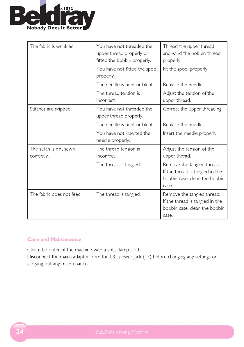 The fabric is wrinkled. You have not threaded the