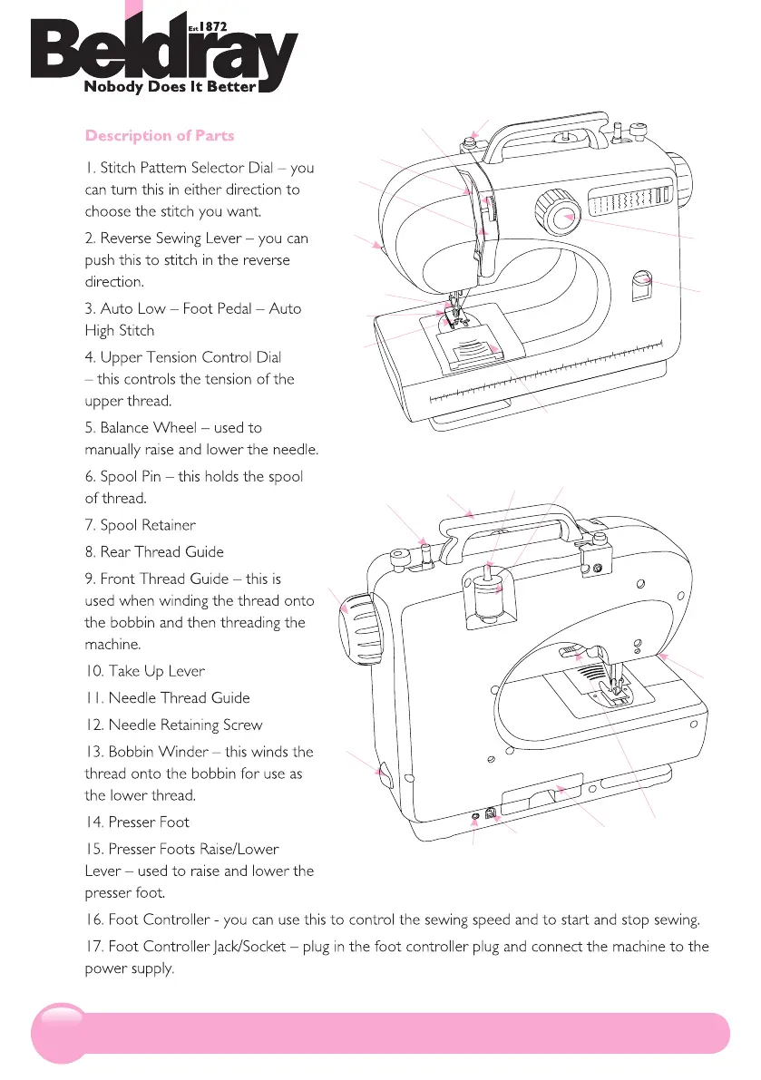 Beldray BEL0050 - Sewing Machine Parts Identification