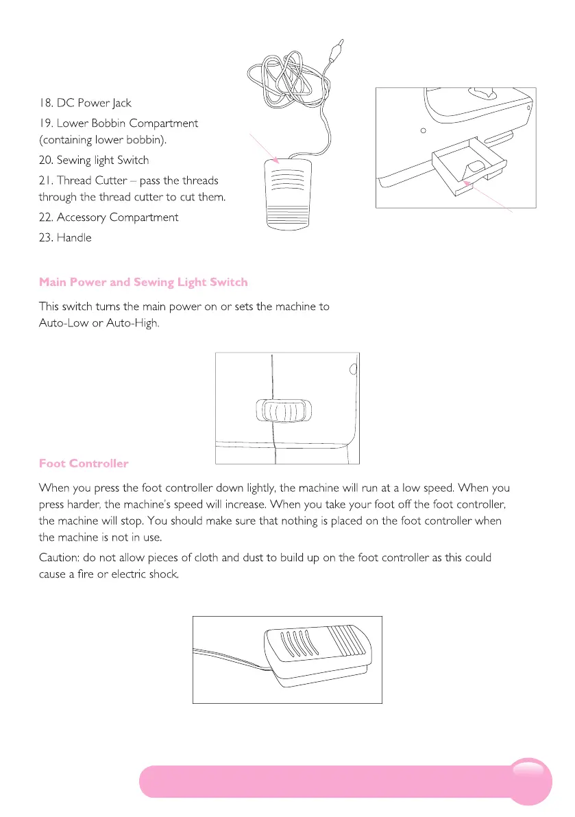 Beldray BEL0050 - Main Power and Sewing Light Switch; Foot Controller
