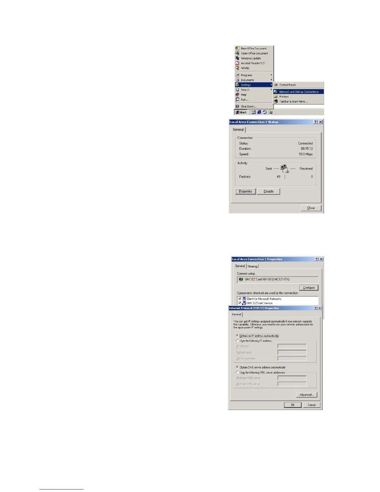 2. If “Obtain an IP address automatically” and “Obtain DNS server address automatically”