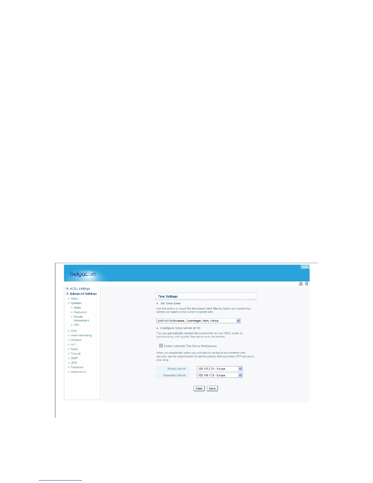 Set the time zone and time server for the Belgacom b-box. This information is used for log entries