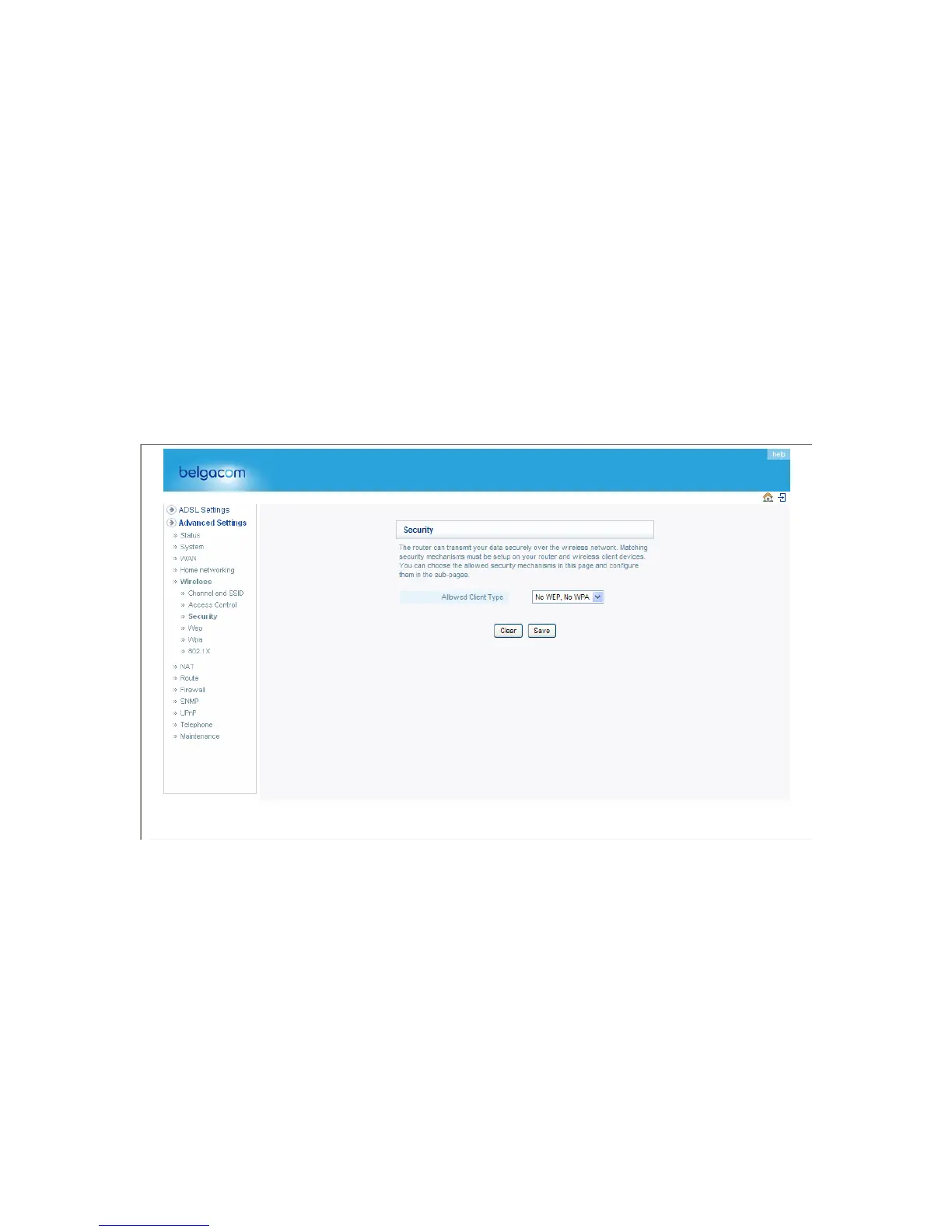 * Selecting the No WEP, No WPA option will bring you directly to the 802.1x configuration page.