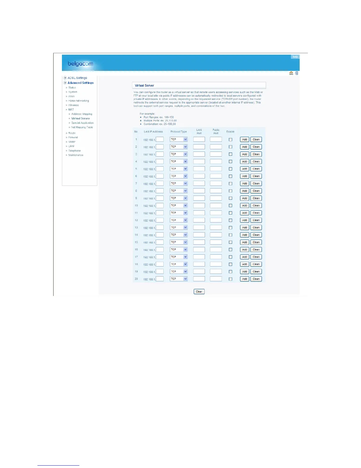 If you configure the Belgacom b-box as a virtual server, remote users accessing services such as