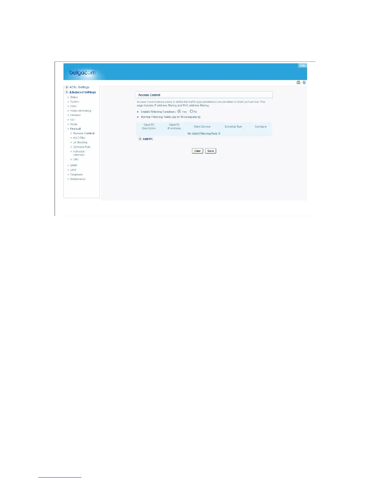 MAC Filtering Table allows the Belgacom b-box to enter up to 32 MAC addresses that are not