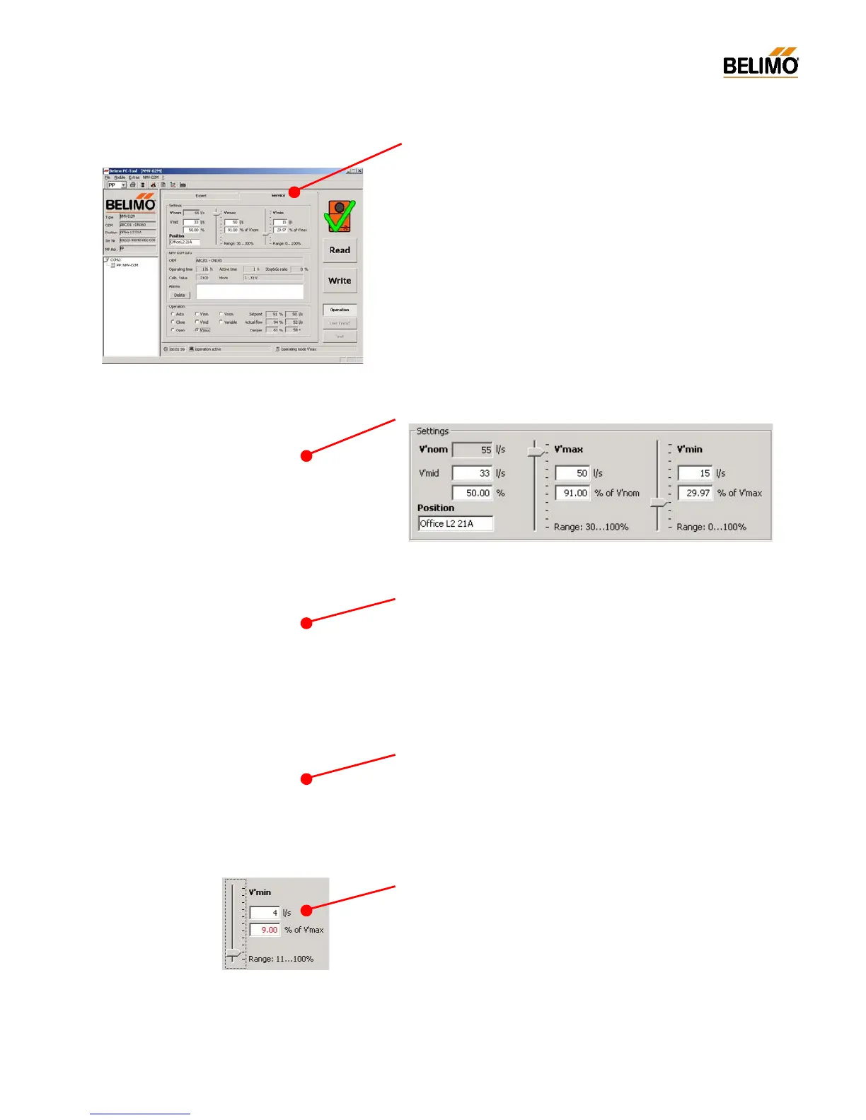 All relevant parameters of a VAV- / CAV-box equipped with a Belimo