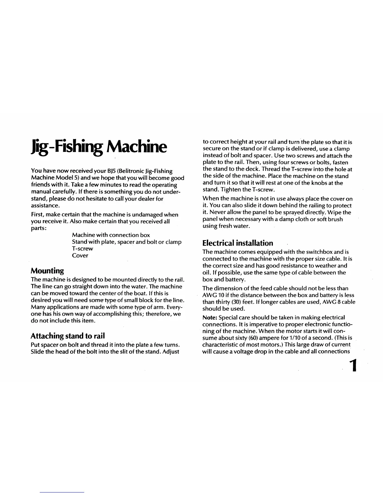 Belitronic BJ5 - Jig-Fishing Machine; Mounting; Attaching stand to rail; Electrical installation
