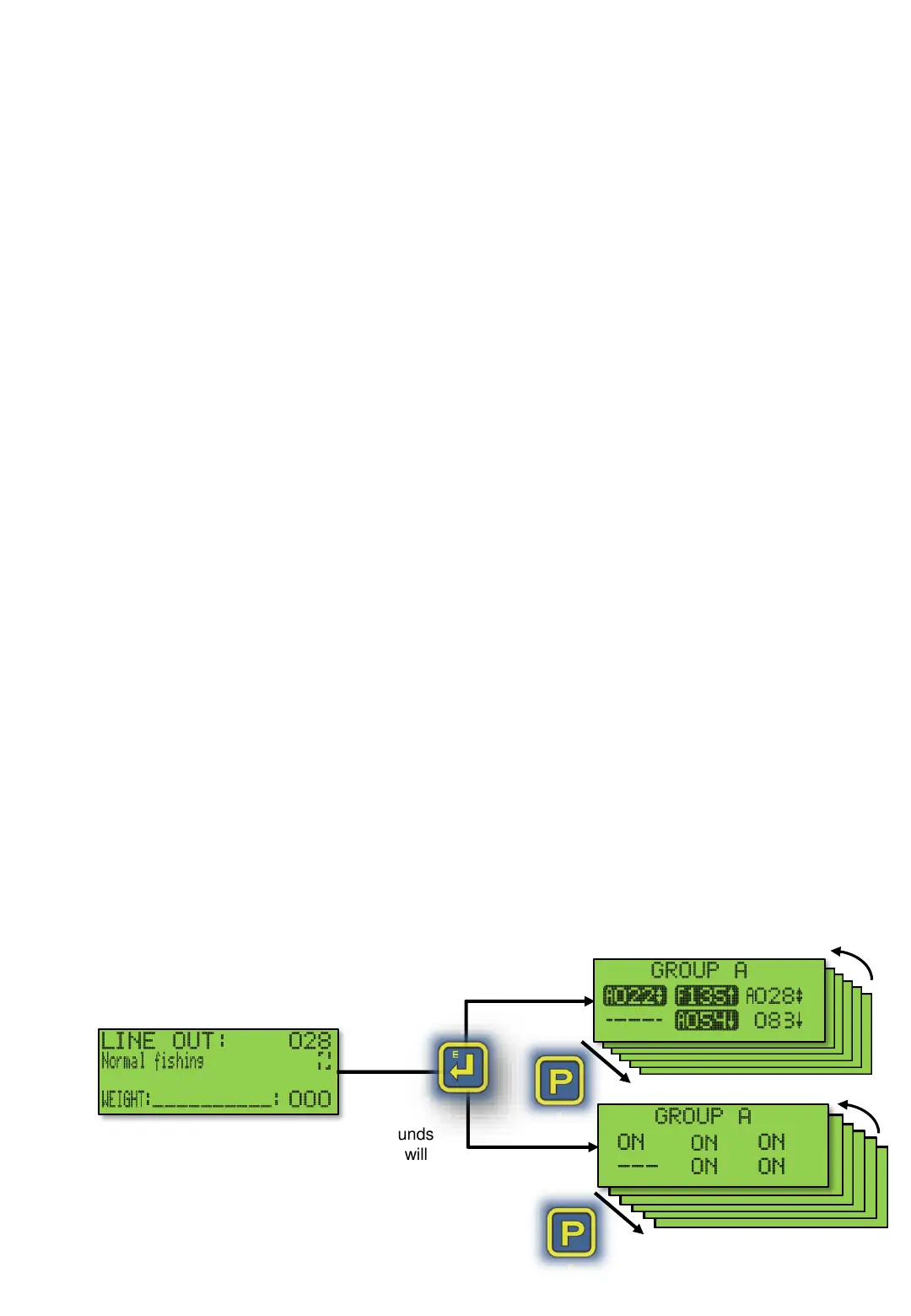 with other machines, hold the [E]enter button while the Line Out screen appears until GROUP A