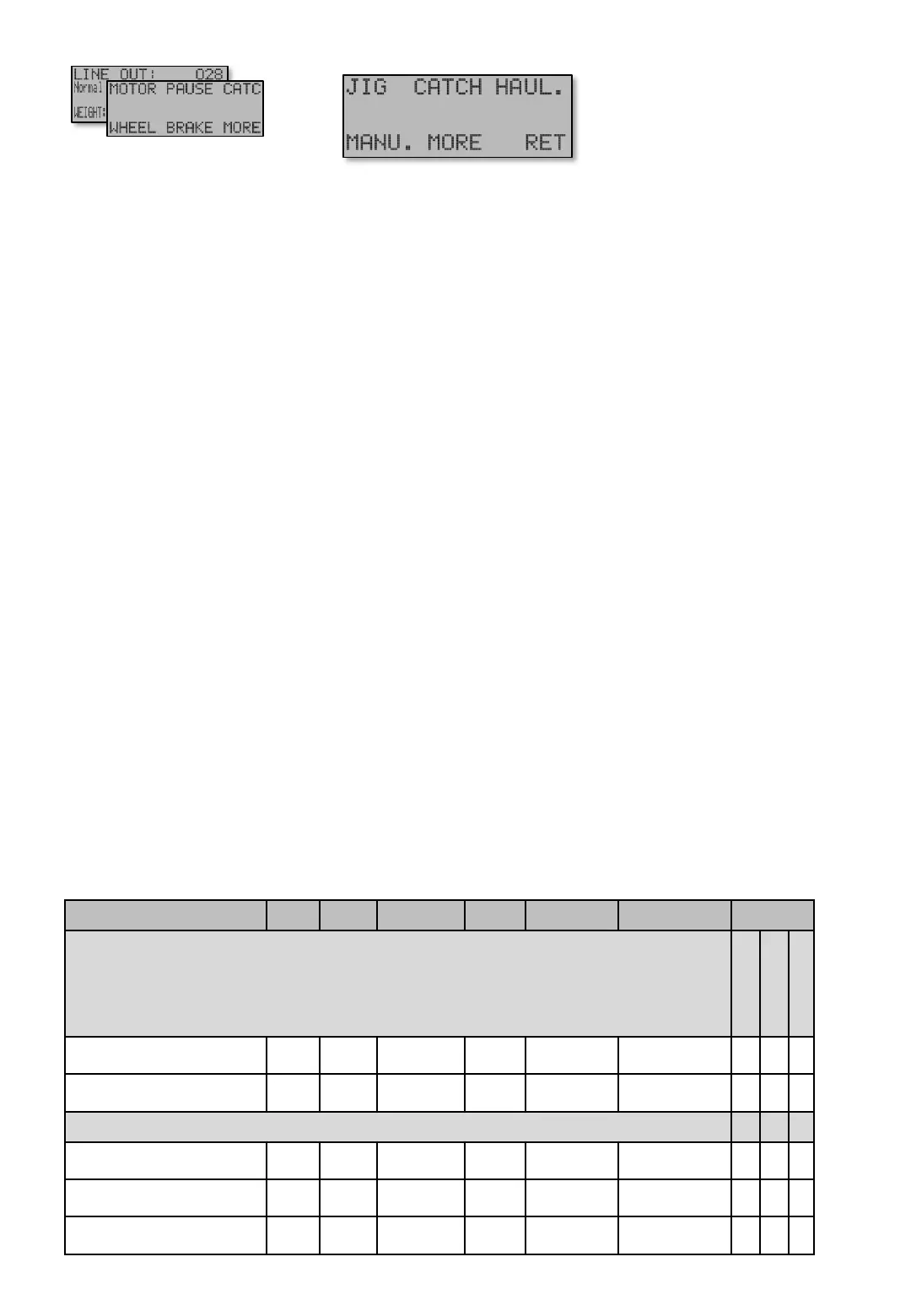 and Haul up modes are used when fishing, and Manual mode in manual mode and when machine is
