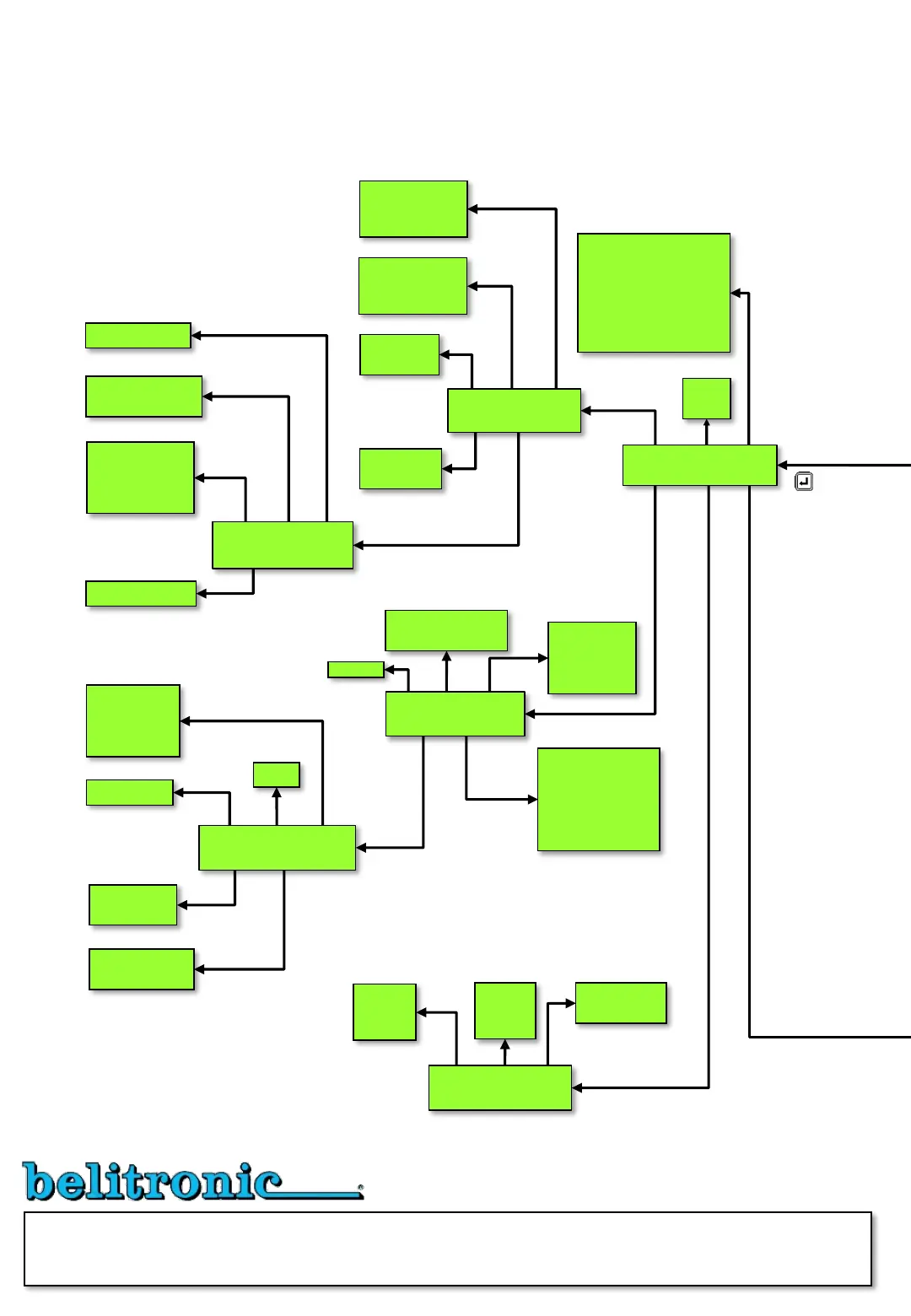 Flowchart showing how to get from one picture to the other. Detailed description of all functions and display texts are found in the manual. From