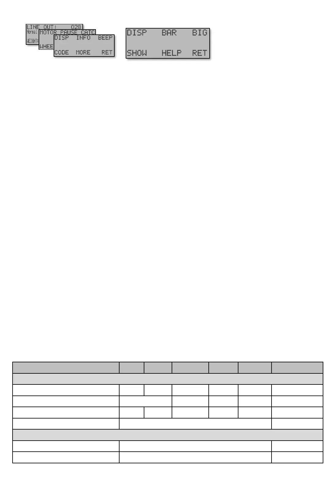 • WEIGHT. Motor power consumption. Each line corresponds to 0.4 amps and a block of 3 amps.