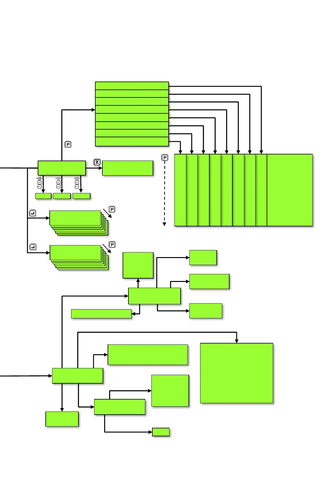 Belitronic BJ5000 Ex - Menu Navigation and Program Flowcharts; Chapter P: Fish Programs; Chapter Z: Load, Save, Factory; Display Menu