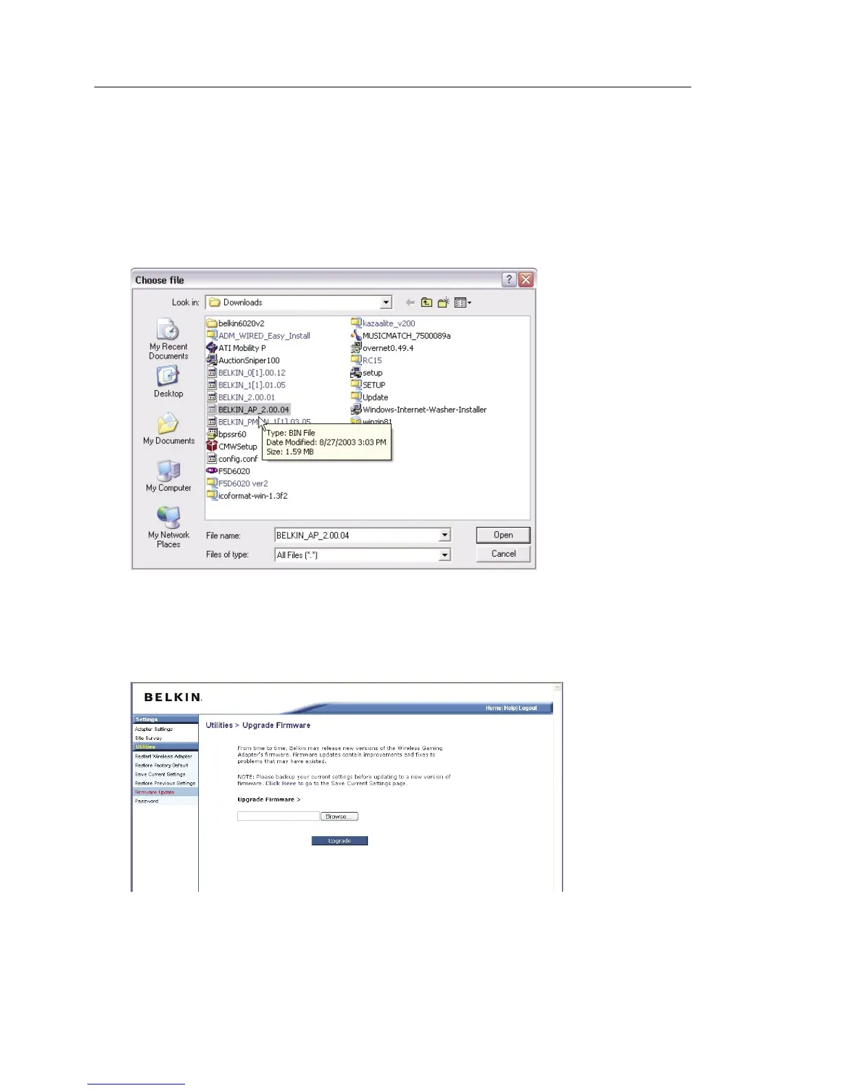 2. Browse to the firmware file you downloaded. Select the file by