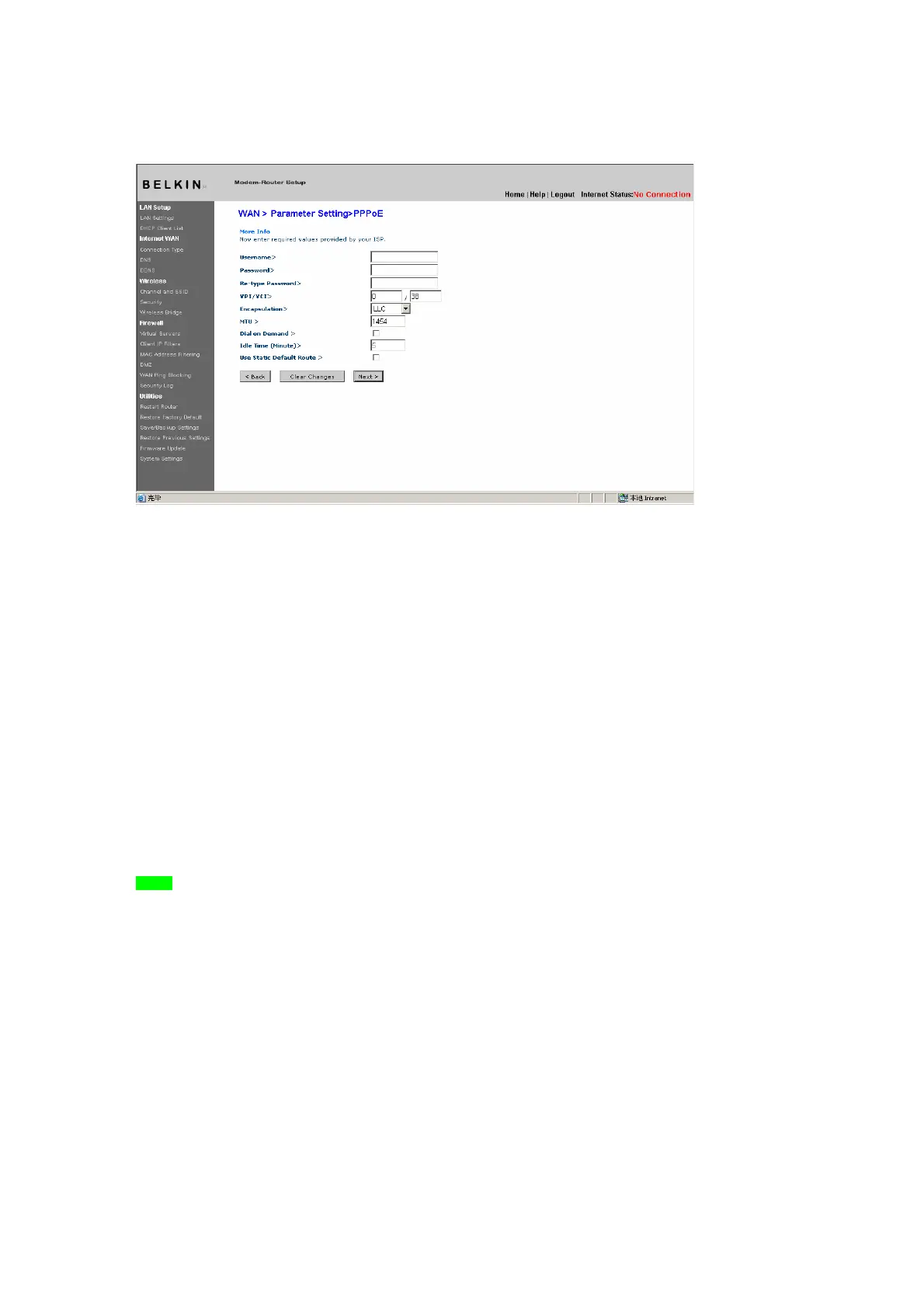 7. Idle Time (Minutes) - Enter the maximum idle time for the Internet