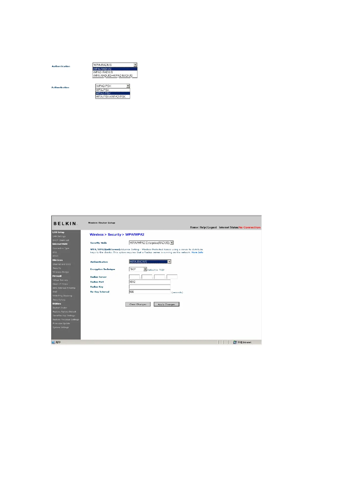 2. Select “WPA-RADIUS” for Authentication