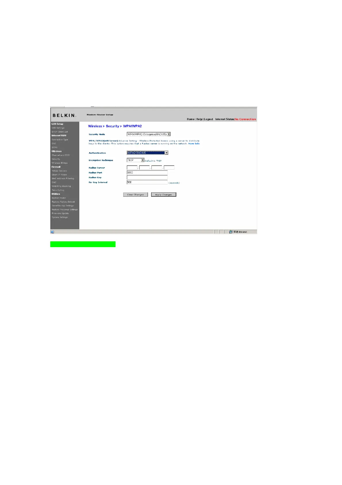4. Enter the IP address of the radius server into the “Radius