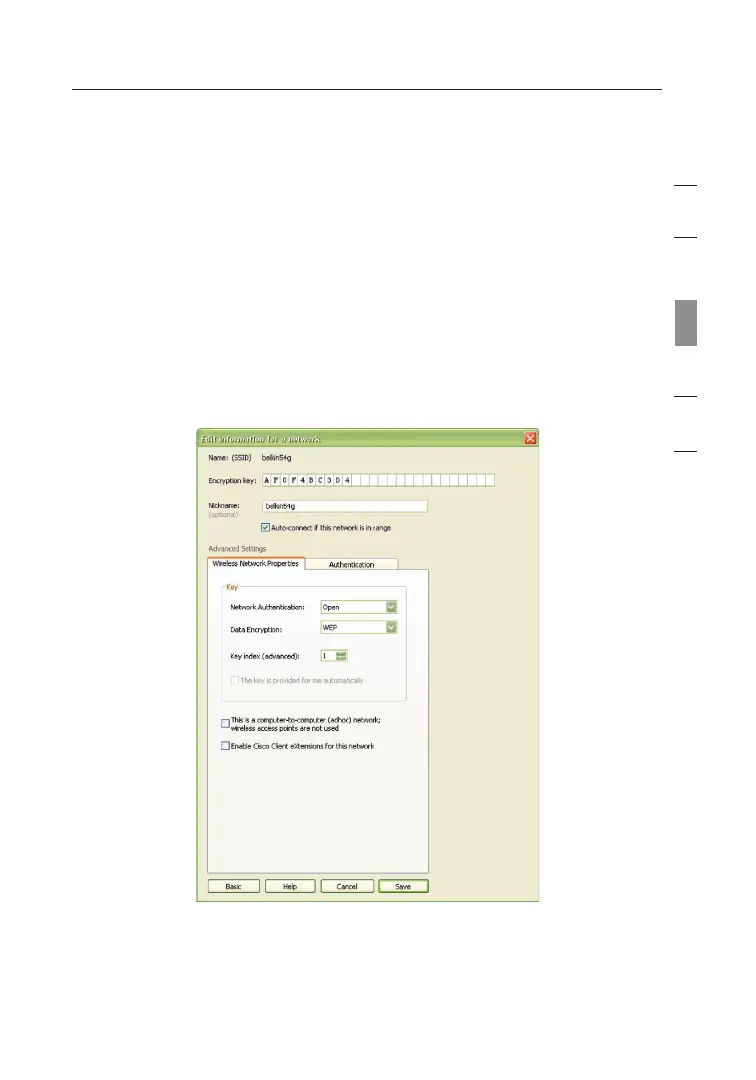 2. Una volta selezionata la modalità di crittografia WEP, sarà possibile inserire la