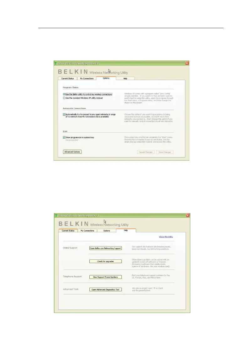 La scheda “Opzioni” dell’utilità di rete consente all’utente di personalizzare le