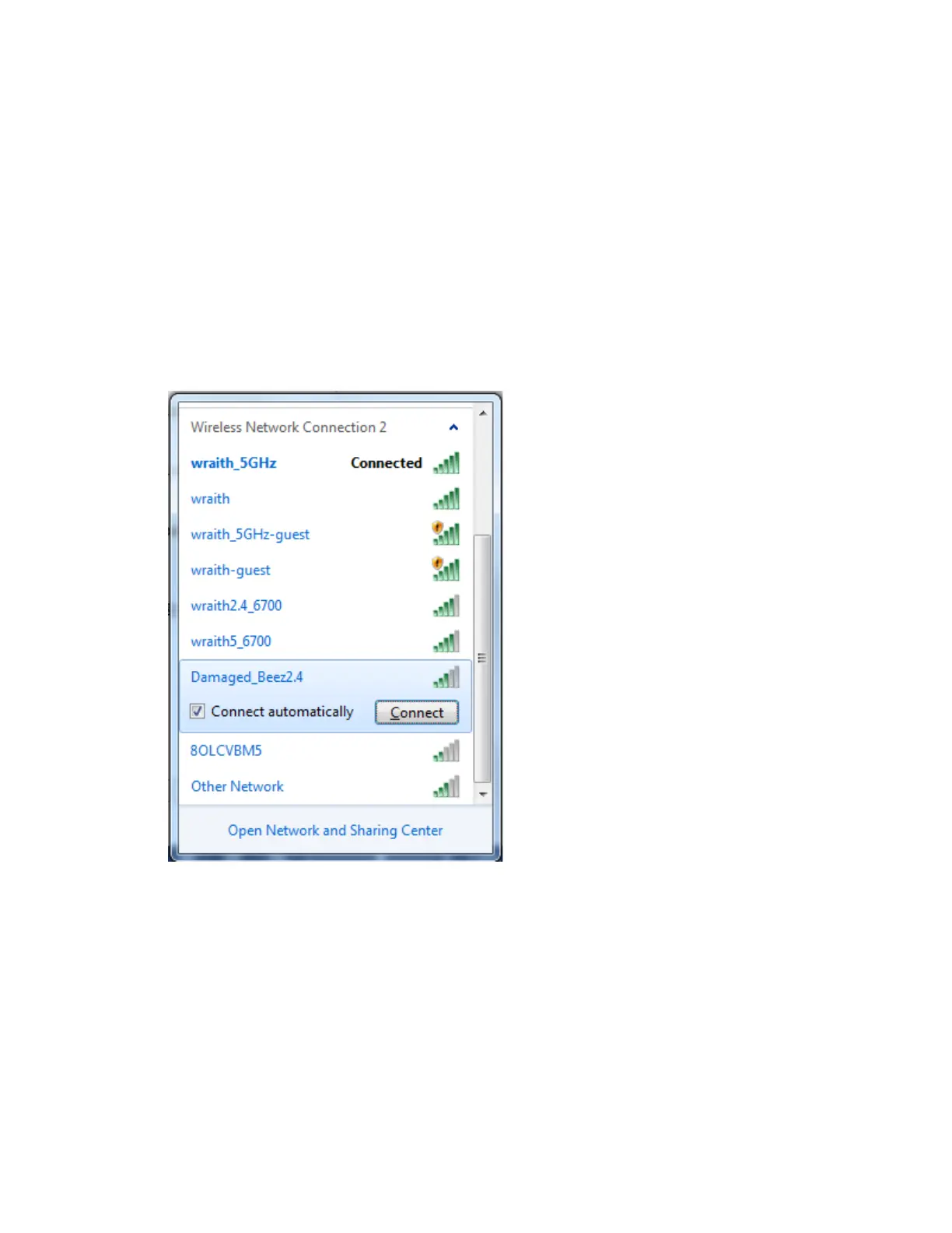 connected to another wireless network named wraith_5GHz. The wireless network name of the