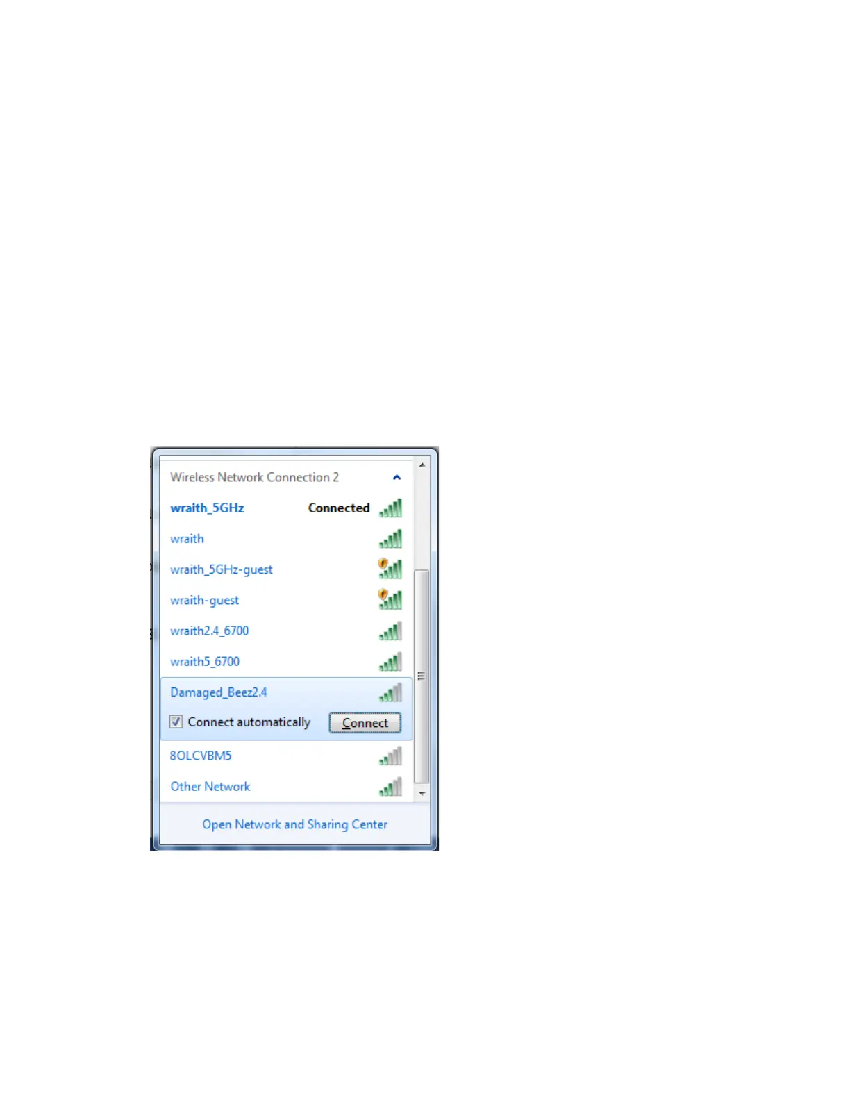 was de computer verbonden met een ander draadloos netwerk, namelijk ‘wraith_5GHz’. De