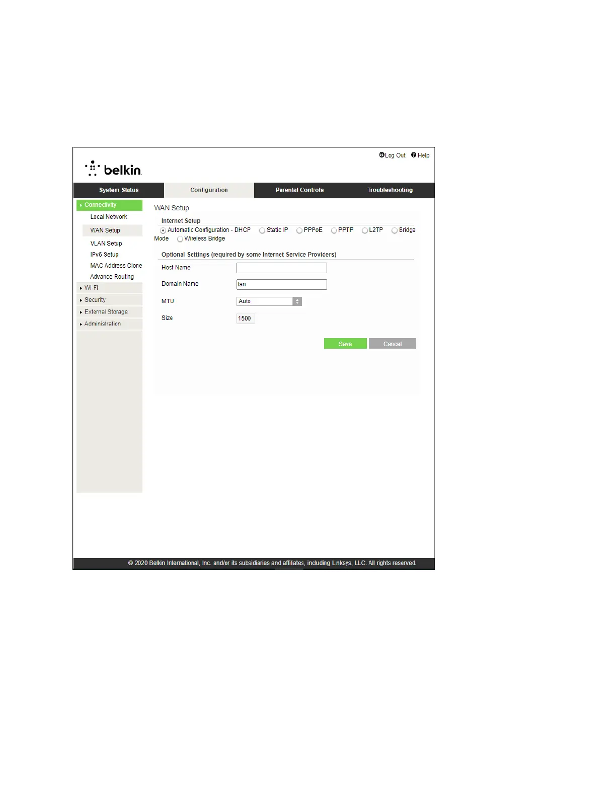 Păstrați setările implicite numai dacă ISP-ul dvs. acceptă DHCP sau dacă vă conectați utilizând o
