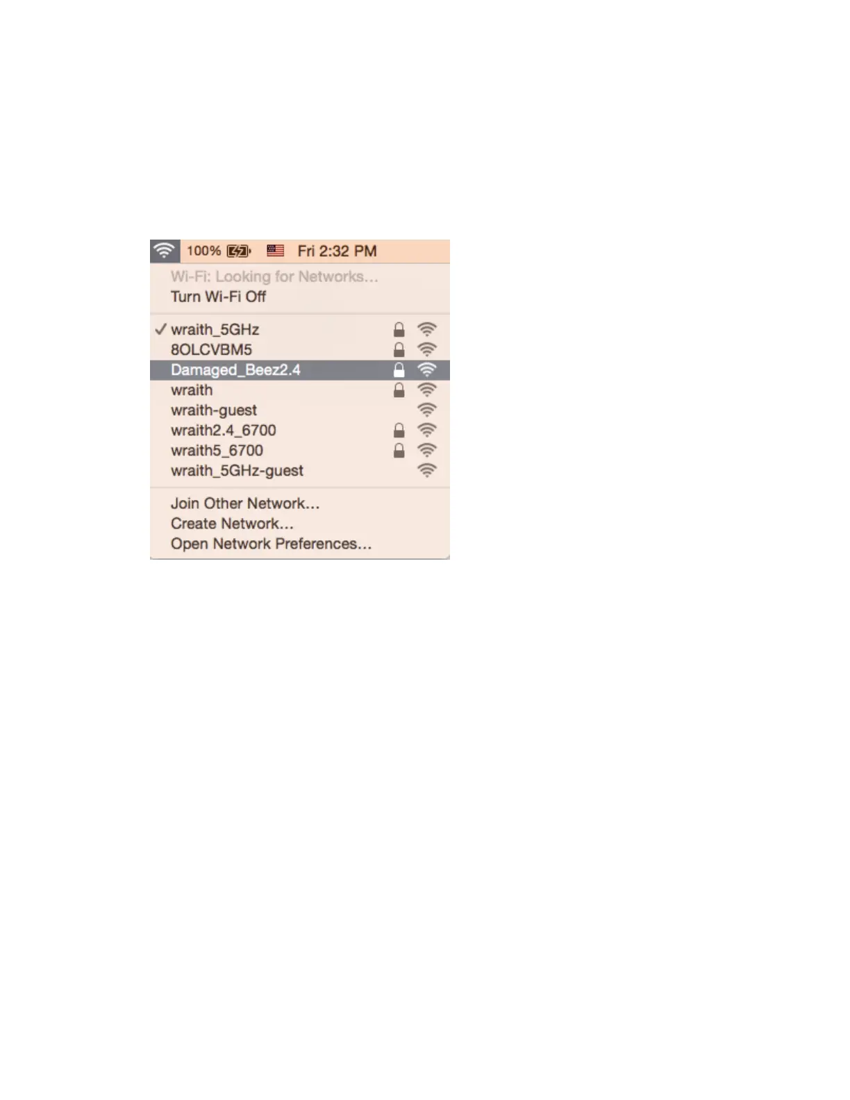 именем wraith_5GHz. В этом примере показано, что выбрано имя беспроводной сети