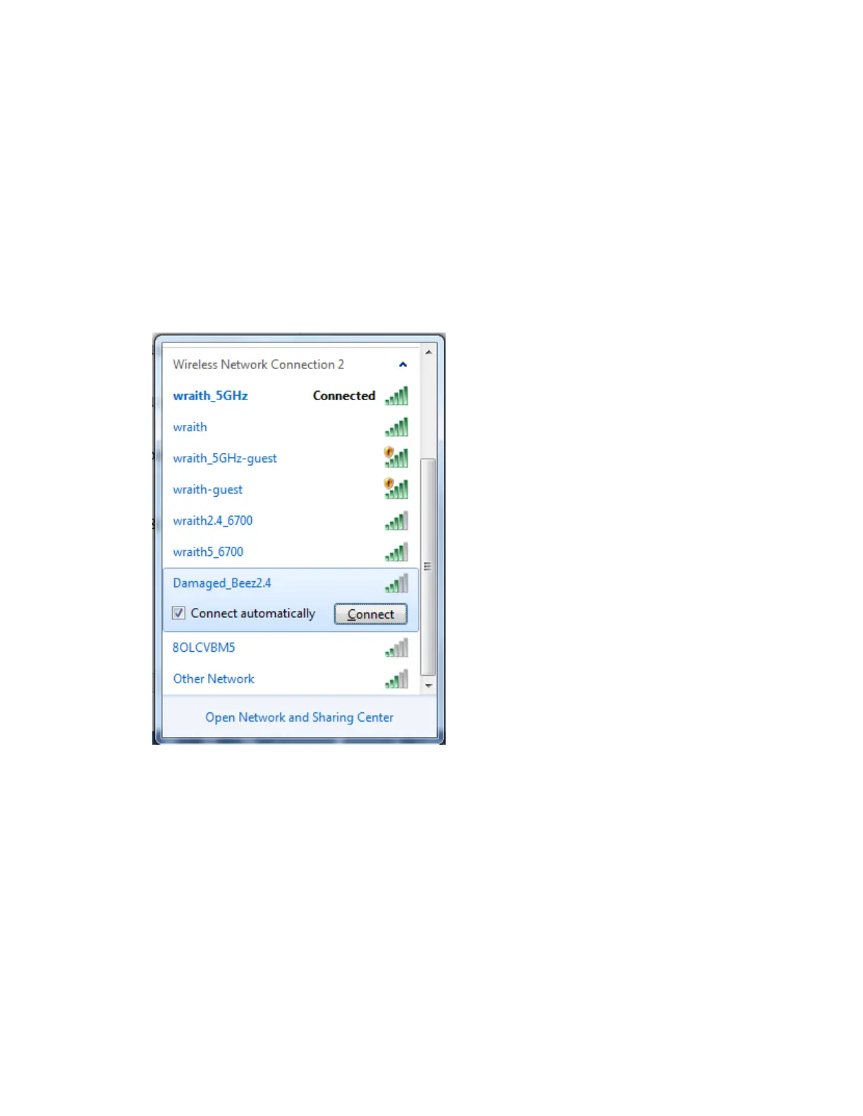 I exemplet nedan var datorn ansluten till ett annat nätverk som hette wraith_5GHz. Namnet på