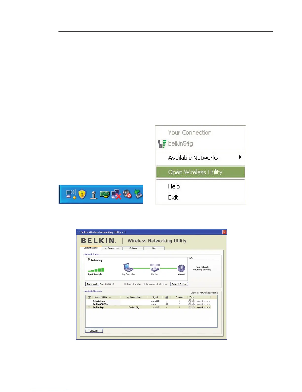 Se l’icona non compare, fare clic su “Start > Programmi > Belkin > Belkin Wireless