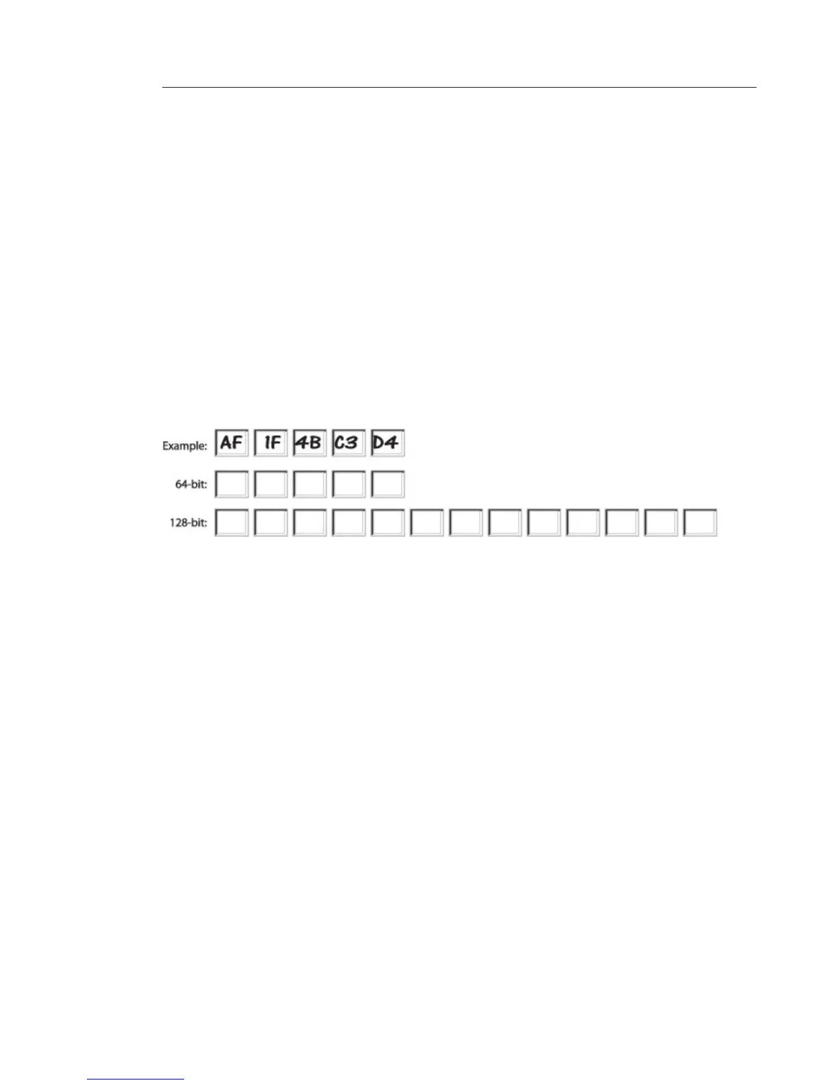 and 0–9. 64-bit keys are five two-digit numbers. 128-bit keys are 13