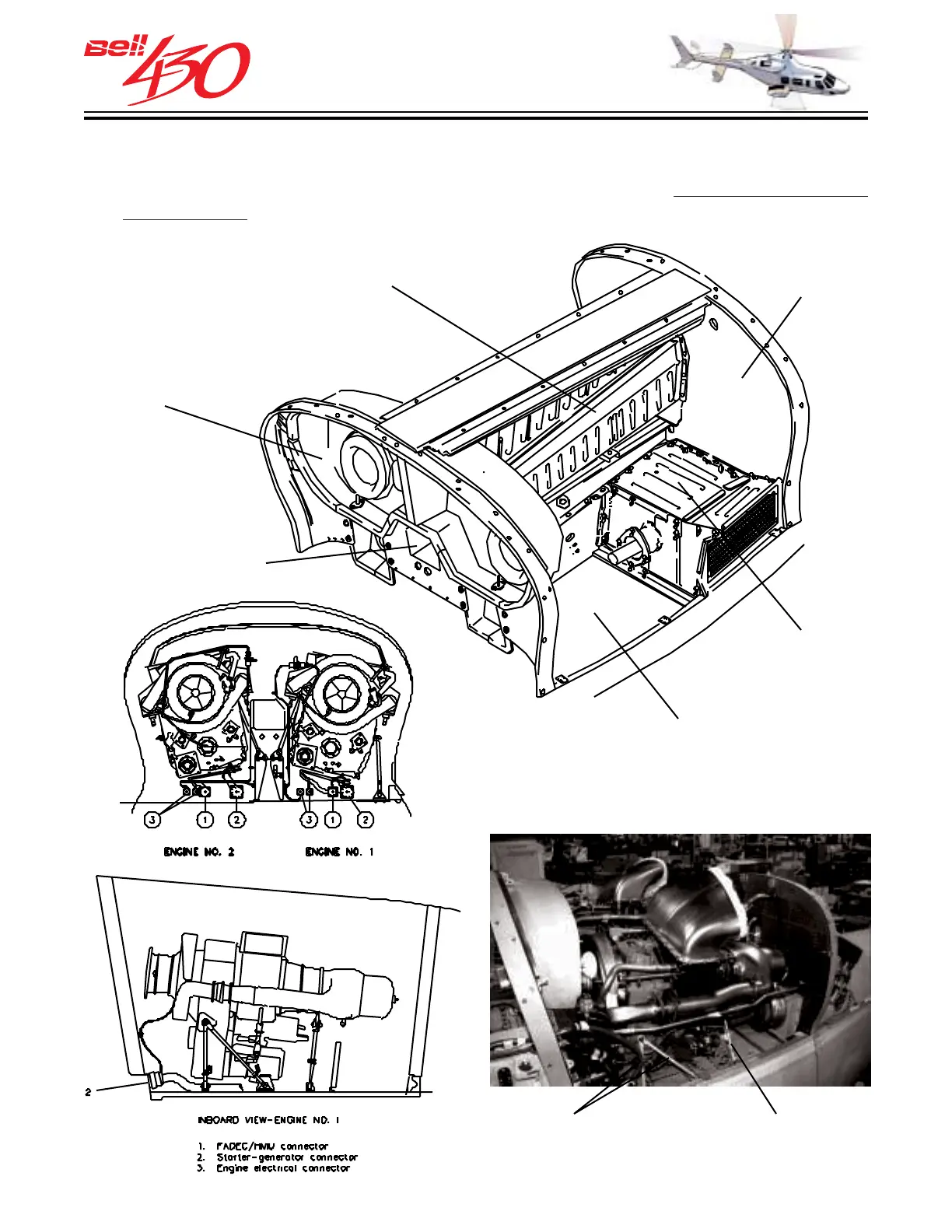 The engine compartments are located on top of the aft fuselage section. Each engine