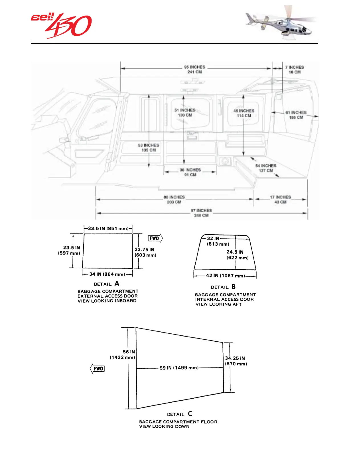 BELL HELICOPTER BELL 430 - INTERIOR DIMENSIONS