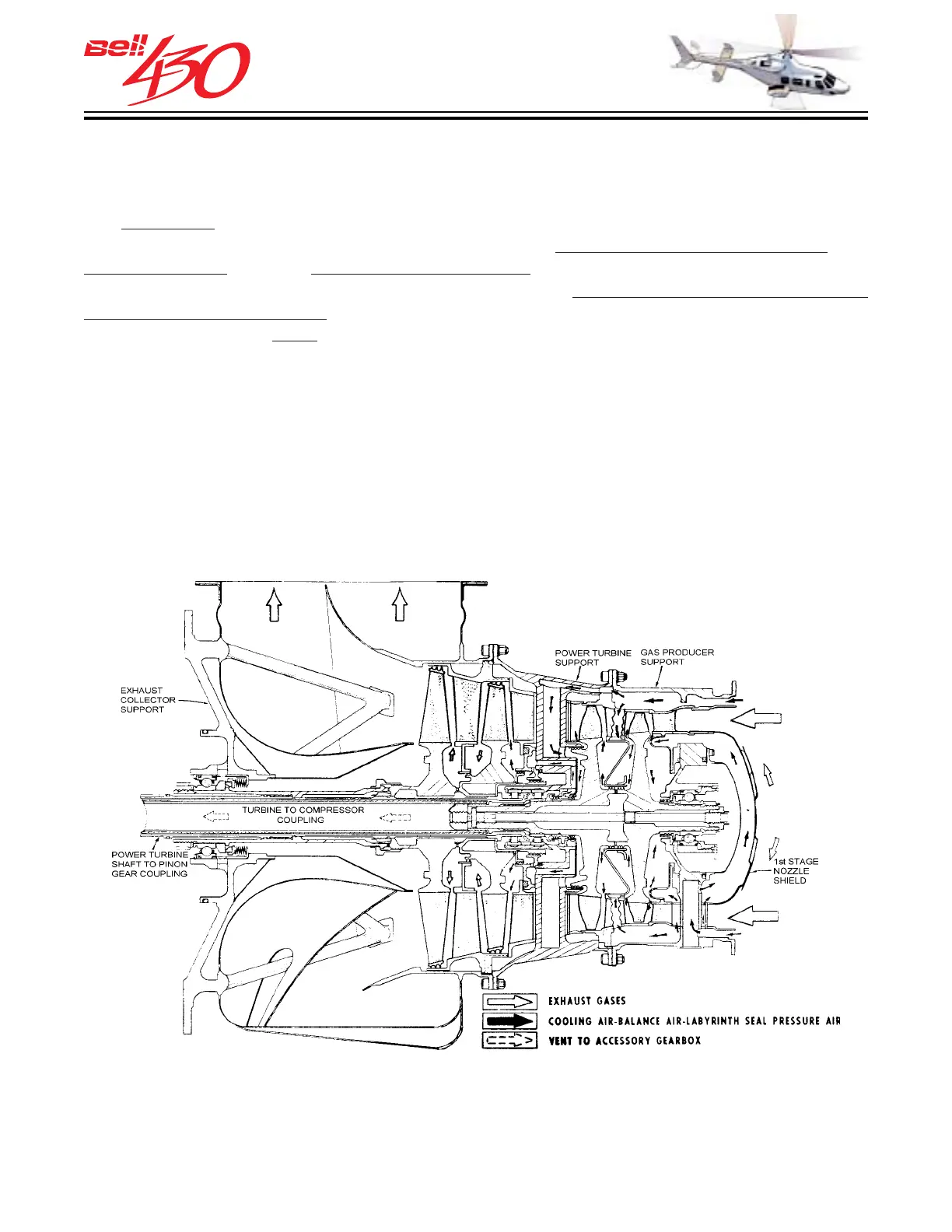 the liner wall, and to cooling air passages in the gas producer turbine support, the