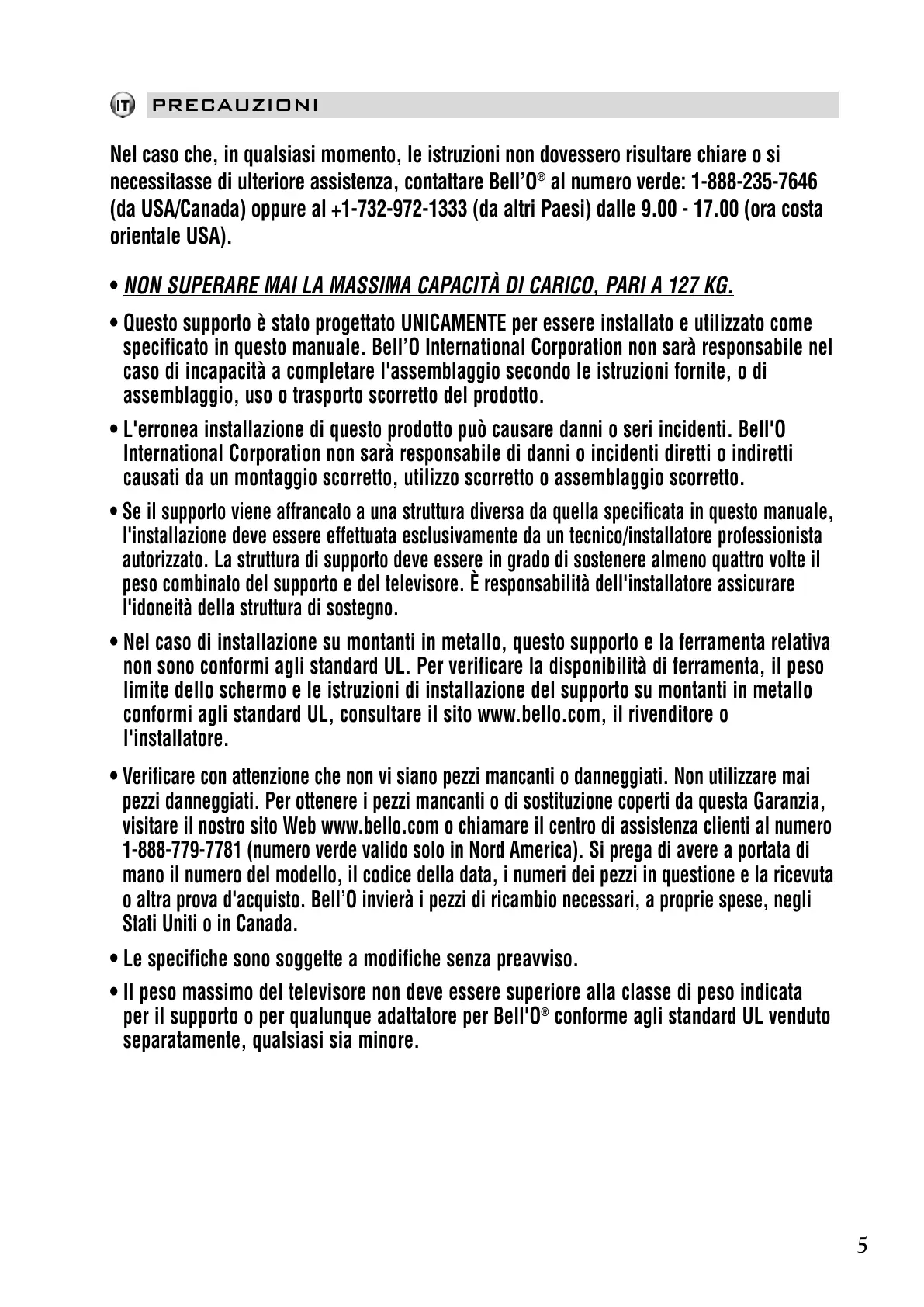 necessitasse di ulteriore assistenza, contattare Bell’O