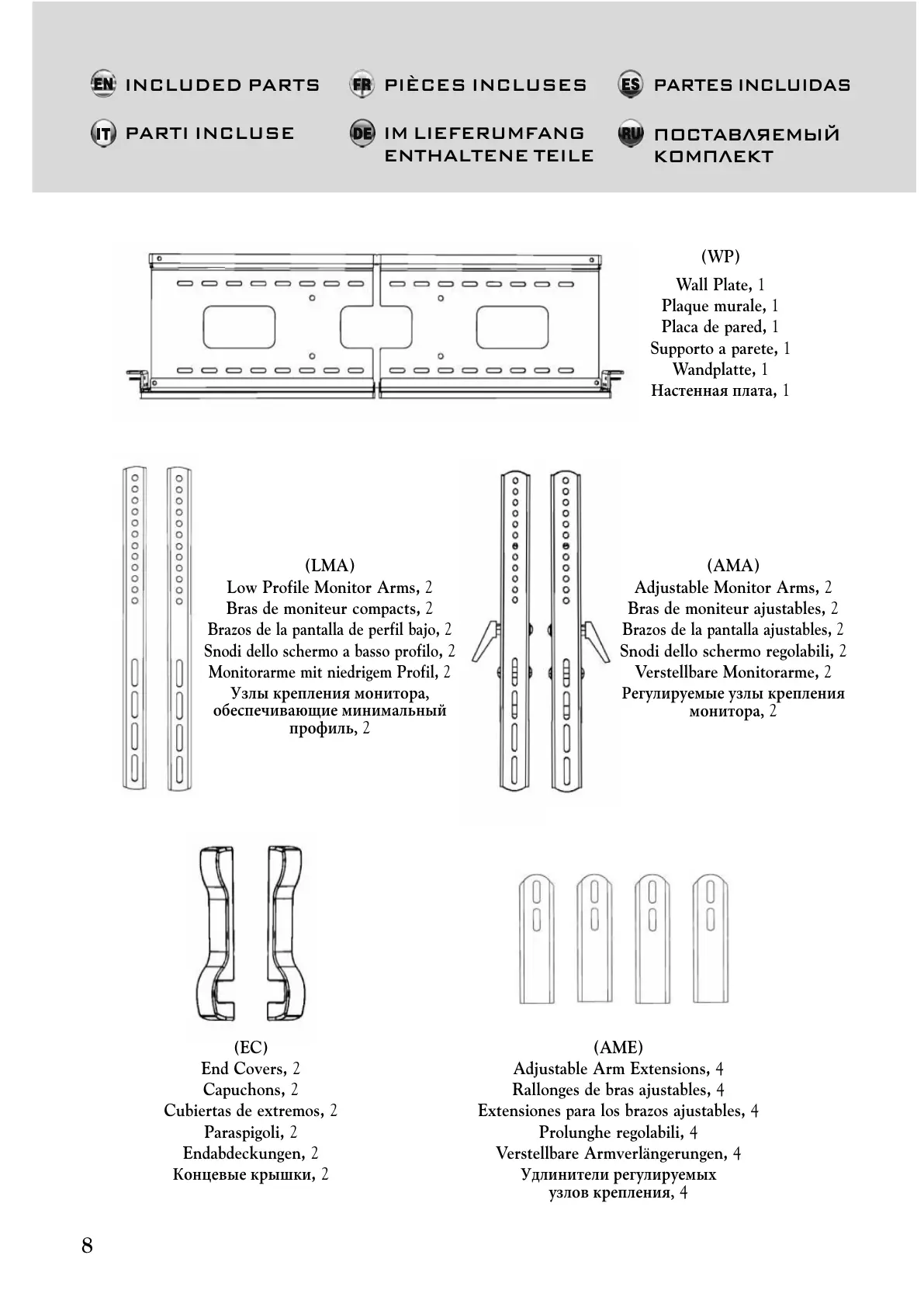 INCLUDED PARTS PIÈCES INCLUSES