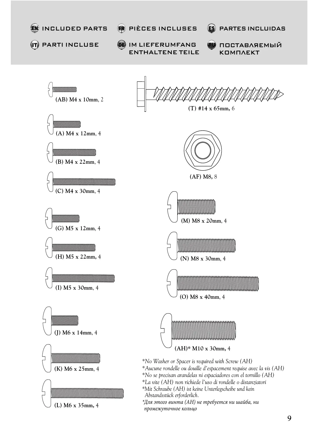 *Aucune rondelle ou douille d'espacement requise avec la vis (AH)