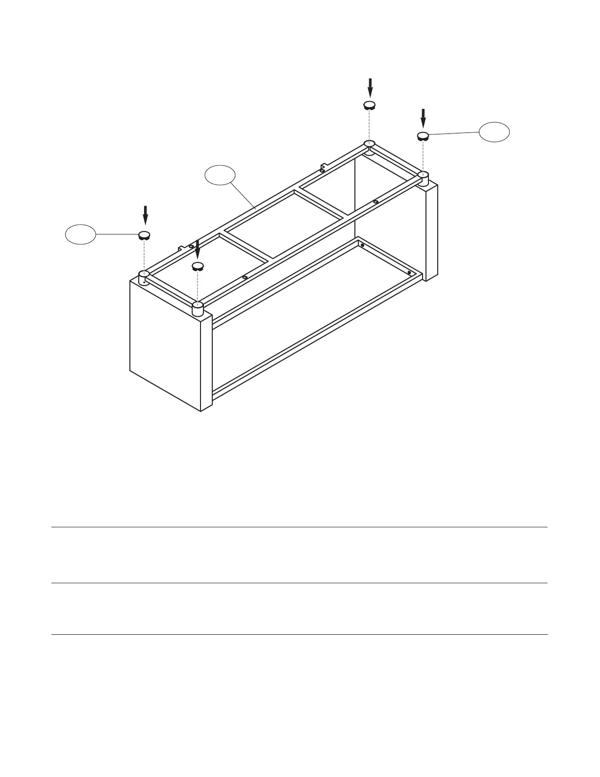 3. INSERT four Plastic Caps (M11) into the openings in the top of the Top Shelf Support Frame (M3). PRESS DOWN firmly to ensure