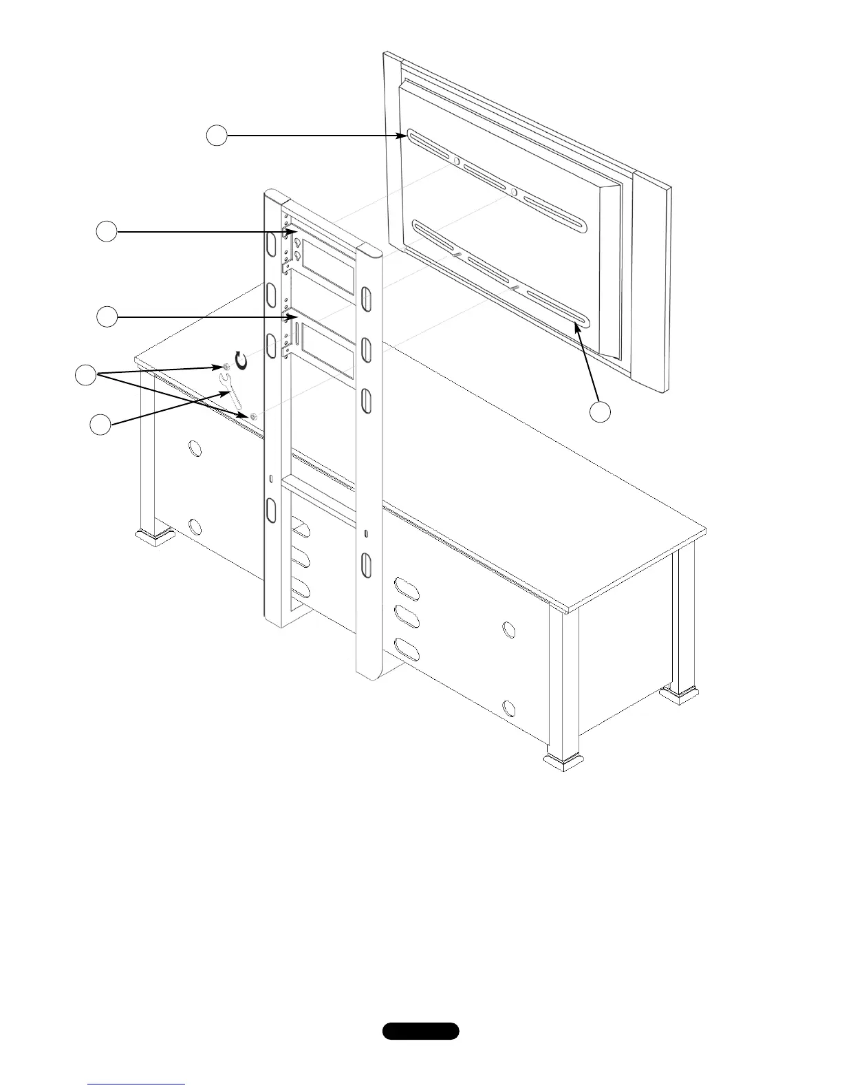 M. USING TWO PEOPLE, CAREFULLY LIFT the TV and PLACE the post of the TOP Mounting Bar (F) into the key