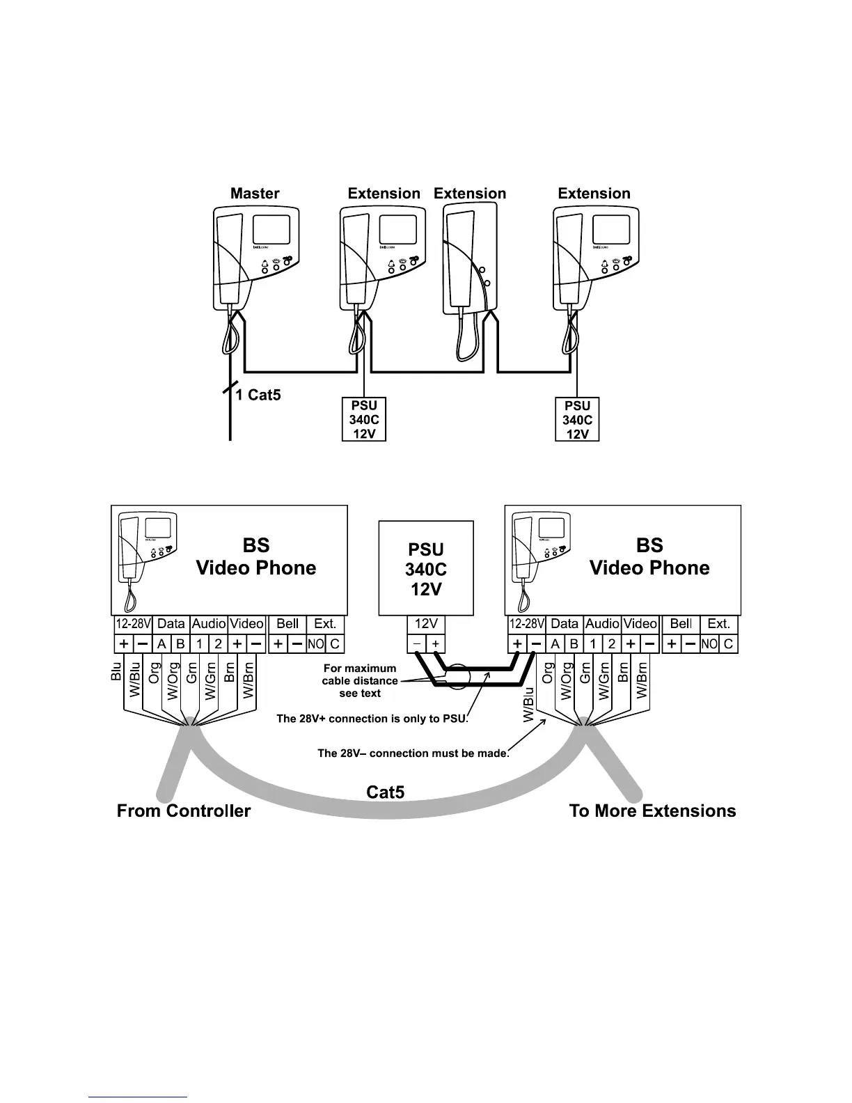 Extension video units must be "daisy chain" wired to preserve video quality