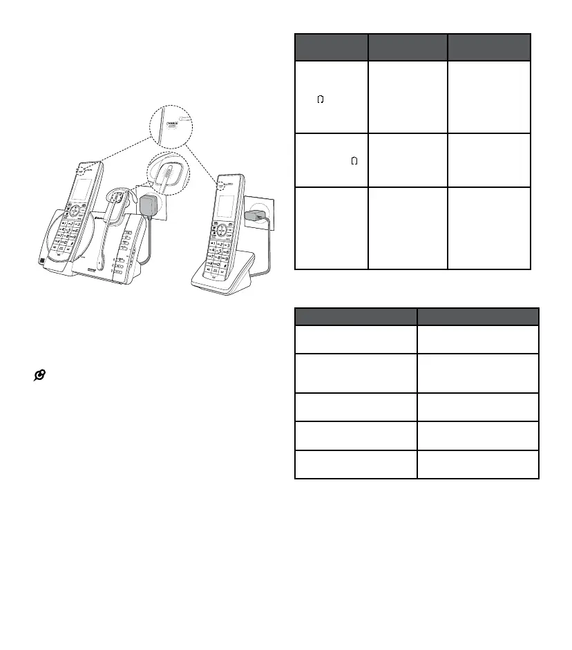 • If you place the handset in the telephone base or the