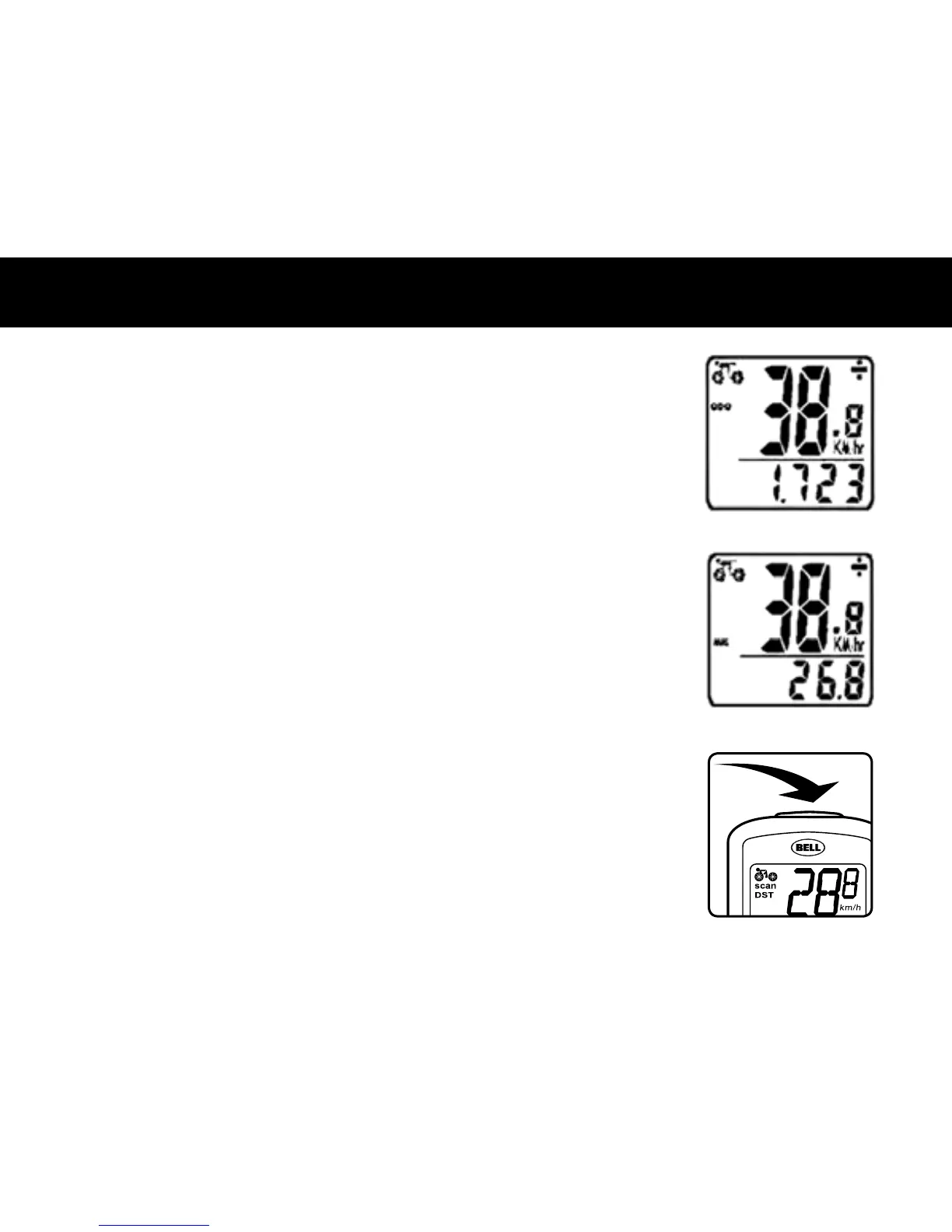 VELOCÍMETRO – En la línea superior se indica la Velocidad instantánea. La gama de