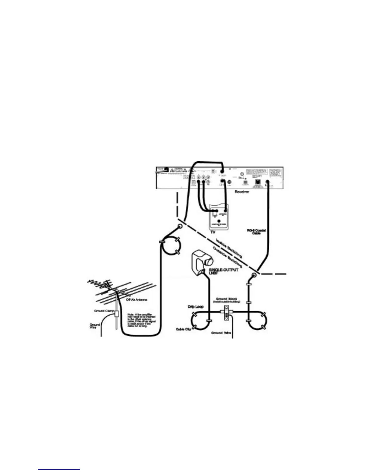 Note: Ground the satellite antenna,