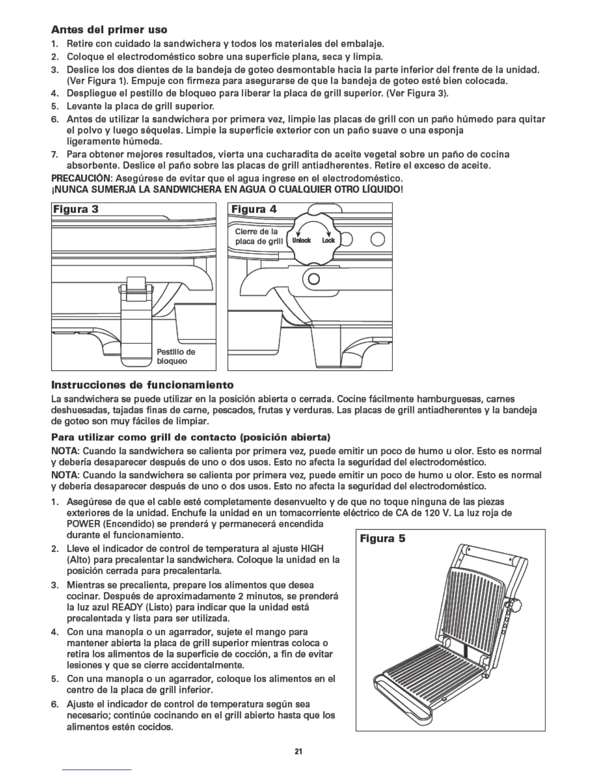 Bella 13267 - Antes del Primer Uso; Instrucciones de Funcionamiento; Para Utilizar como Grill de Contacto (Posición Abierta)