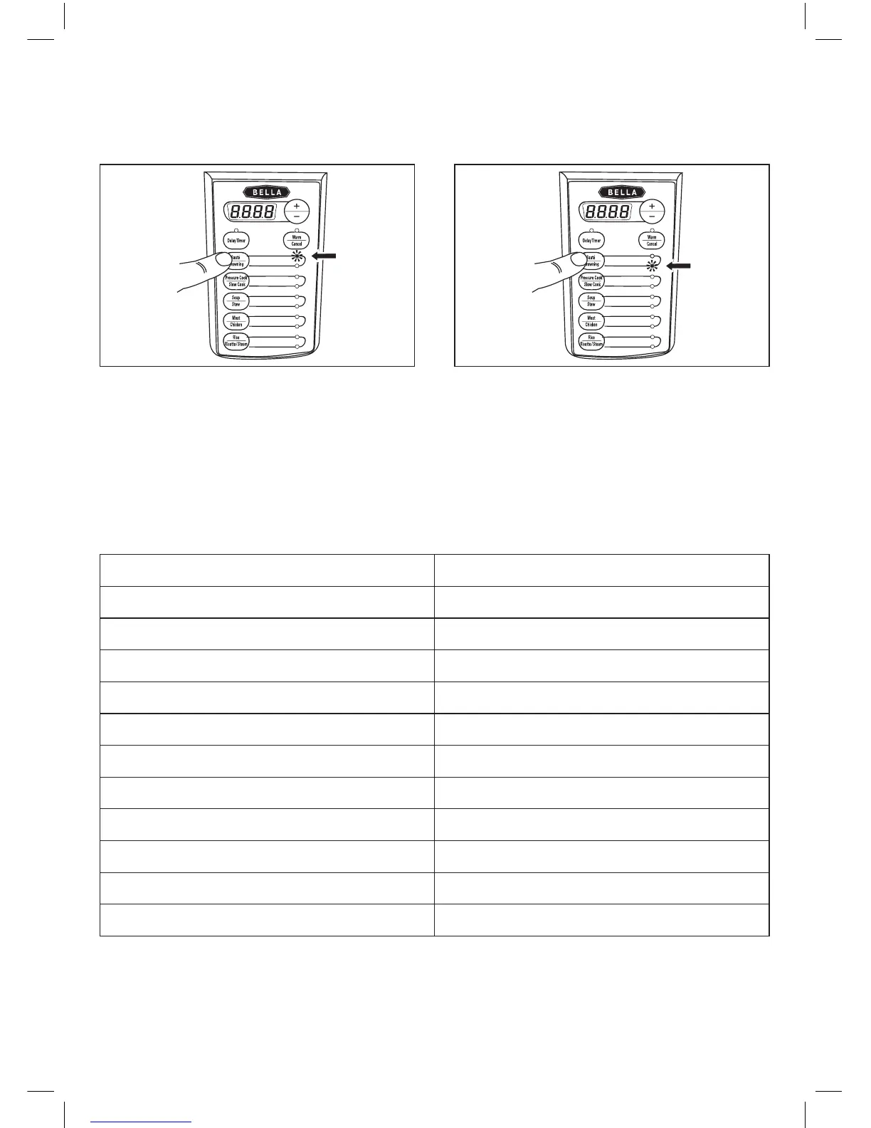 NOTE: Sauté and Browning are the only two functions that operate without the lid. All other functions need