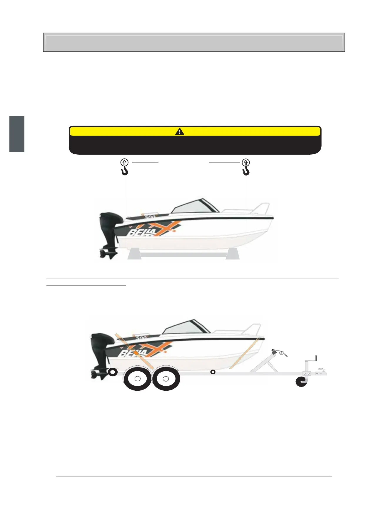 Vi rekommenderar att en lämplig ram används när båten lyfts. Vid lyft utan ram