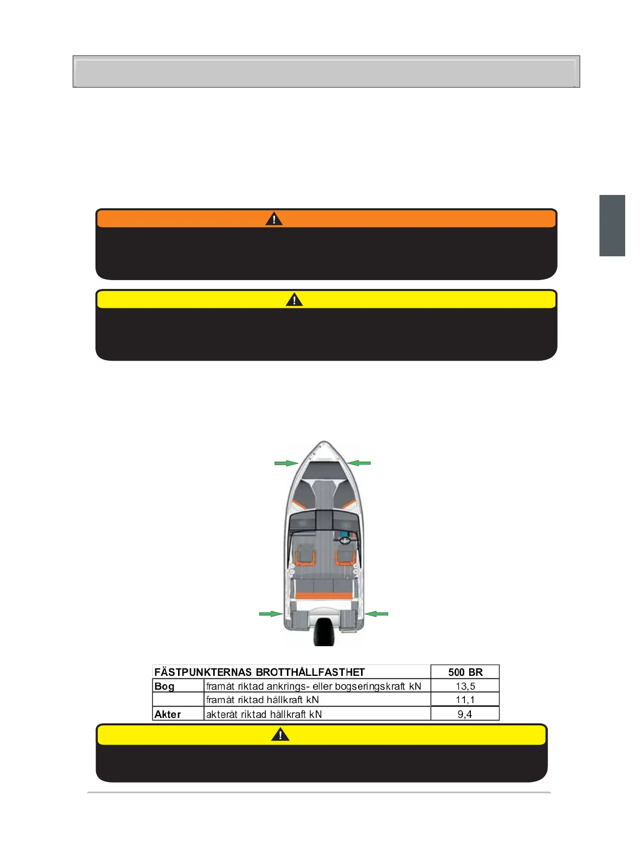 Det ligger på ägarens/användarens ansvar att se till att förtöjnings-, bogserings-, och ankarrepen samt