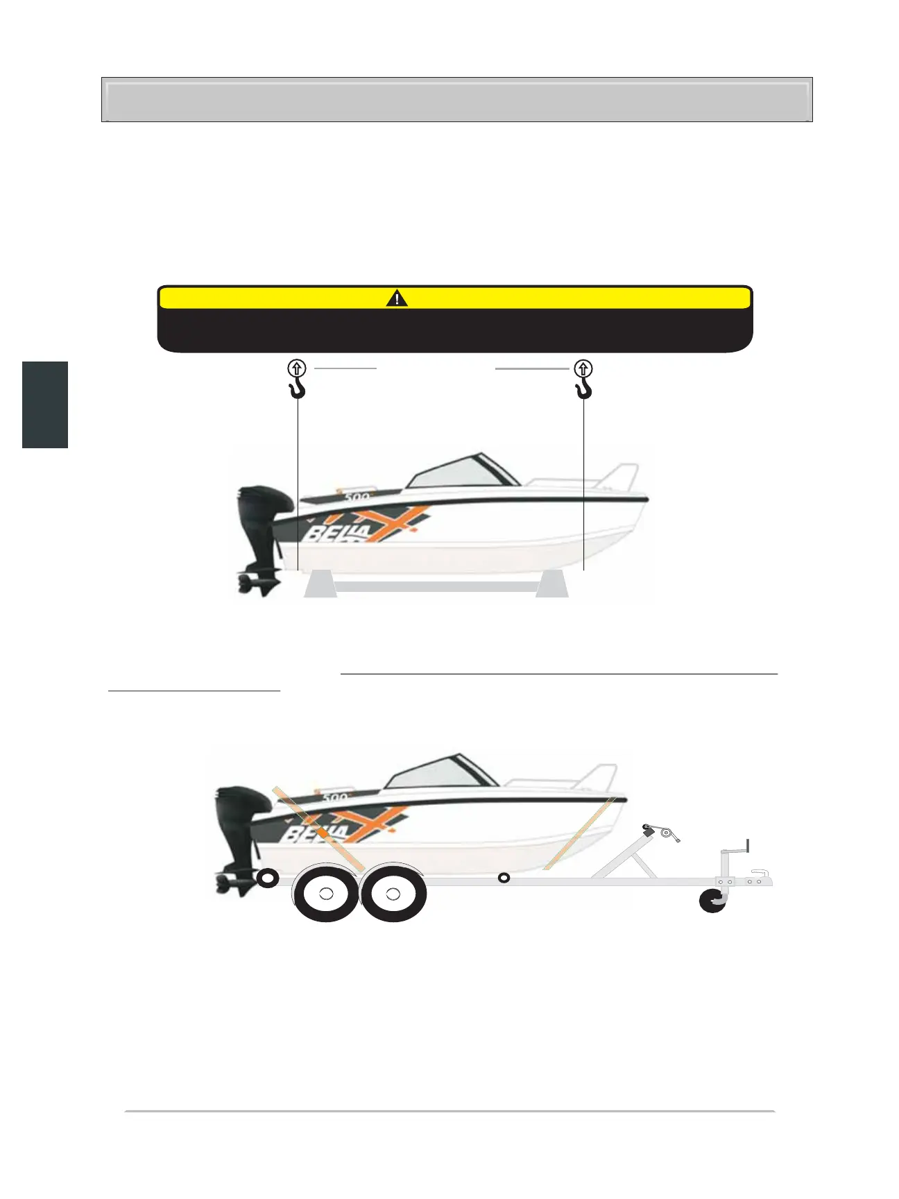 Vi anbefaler bruk av ramme ved løftning av båten. Ved løftning uten ramme utsettes båtens skrog for