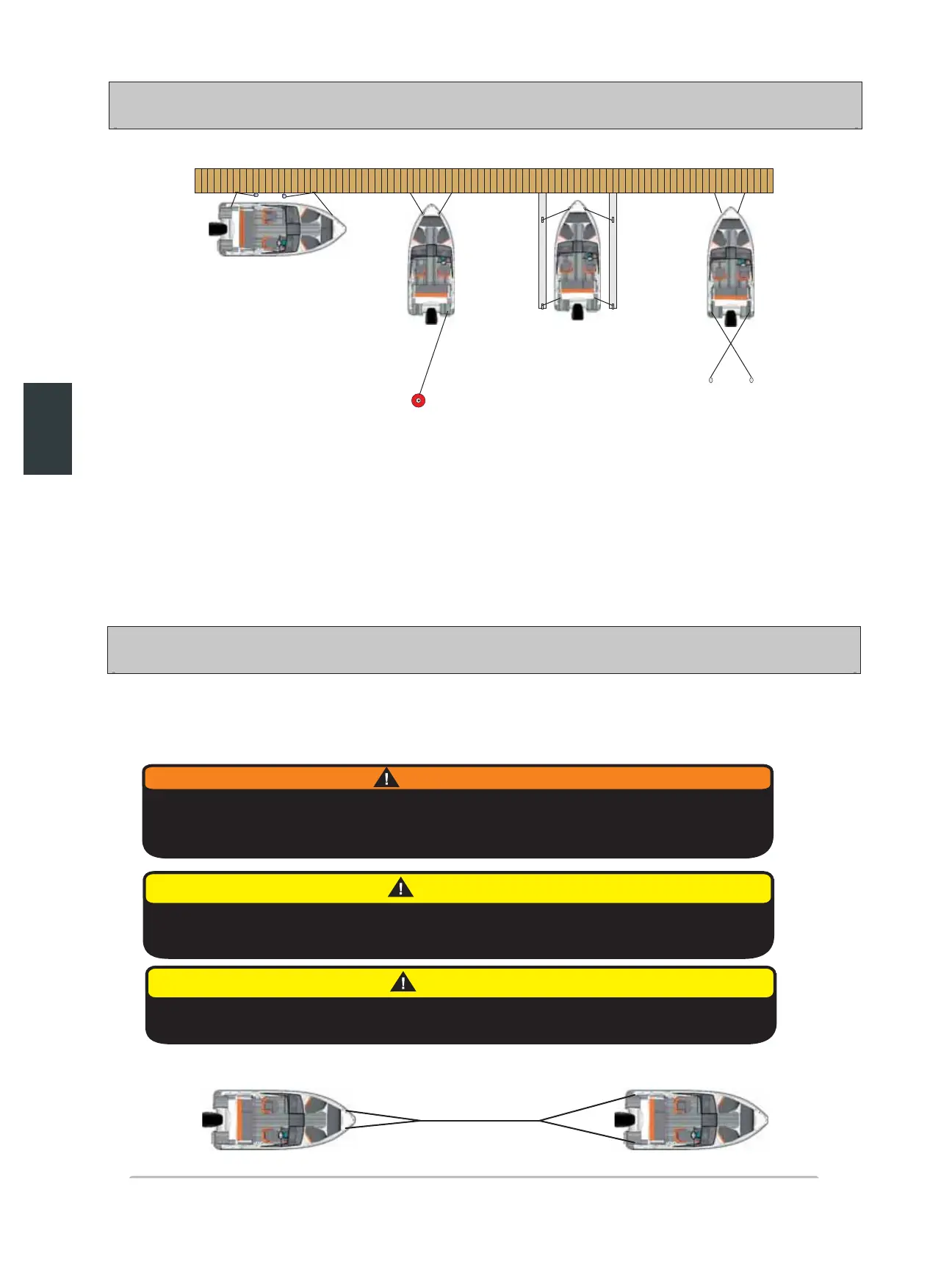 festes slik at den kan motstå sterk vind og høye bølger. Båten bør aldri festes midlertidig dersom