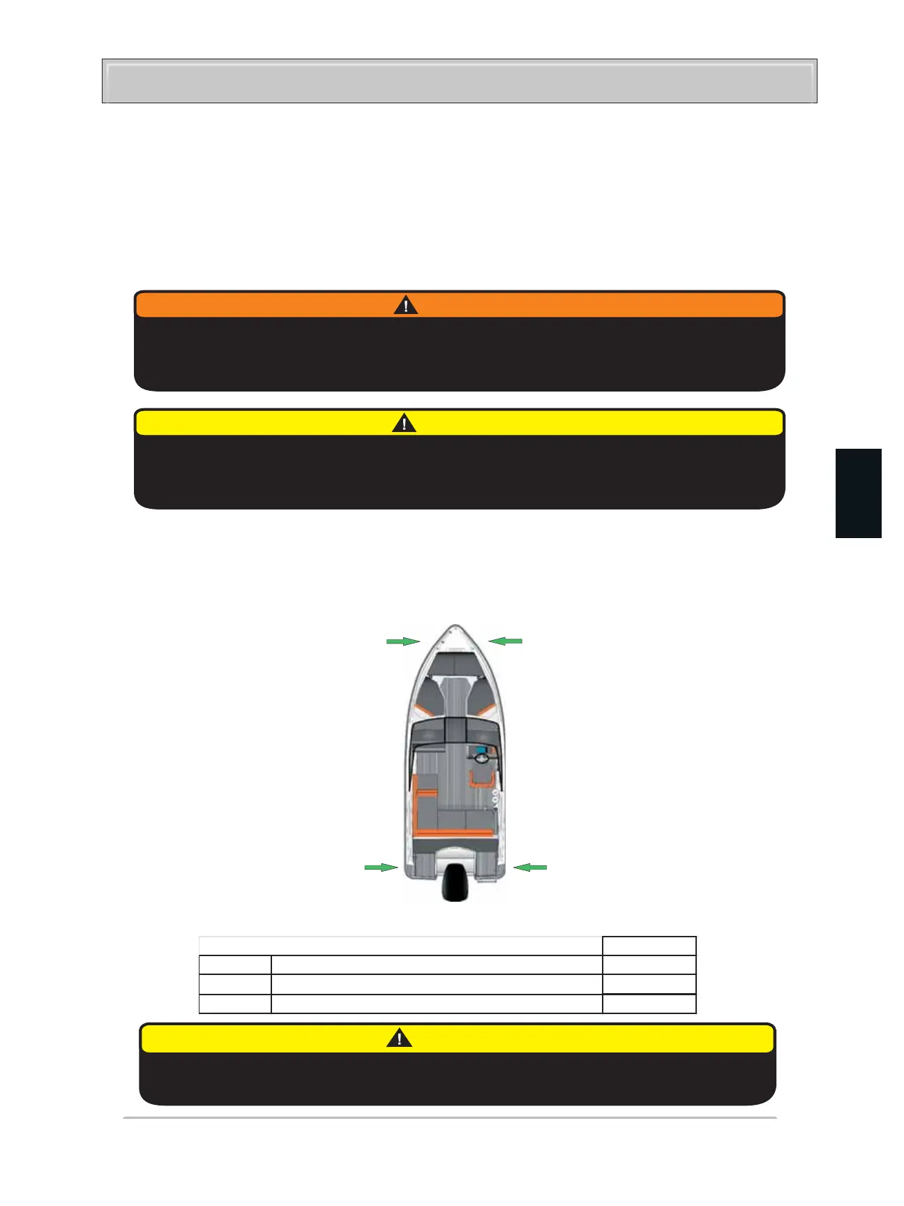 depth. In the picture are shown the strong points to be used when anchoring, mooring or towing.
