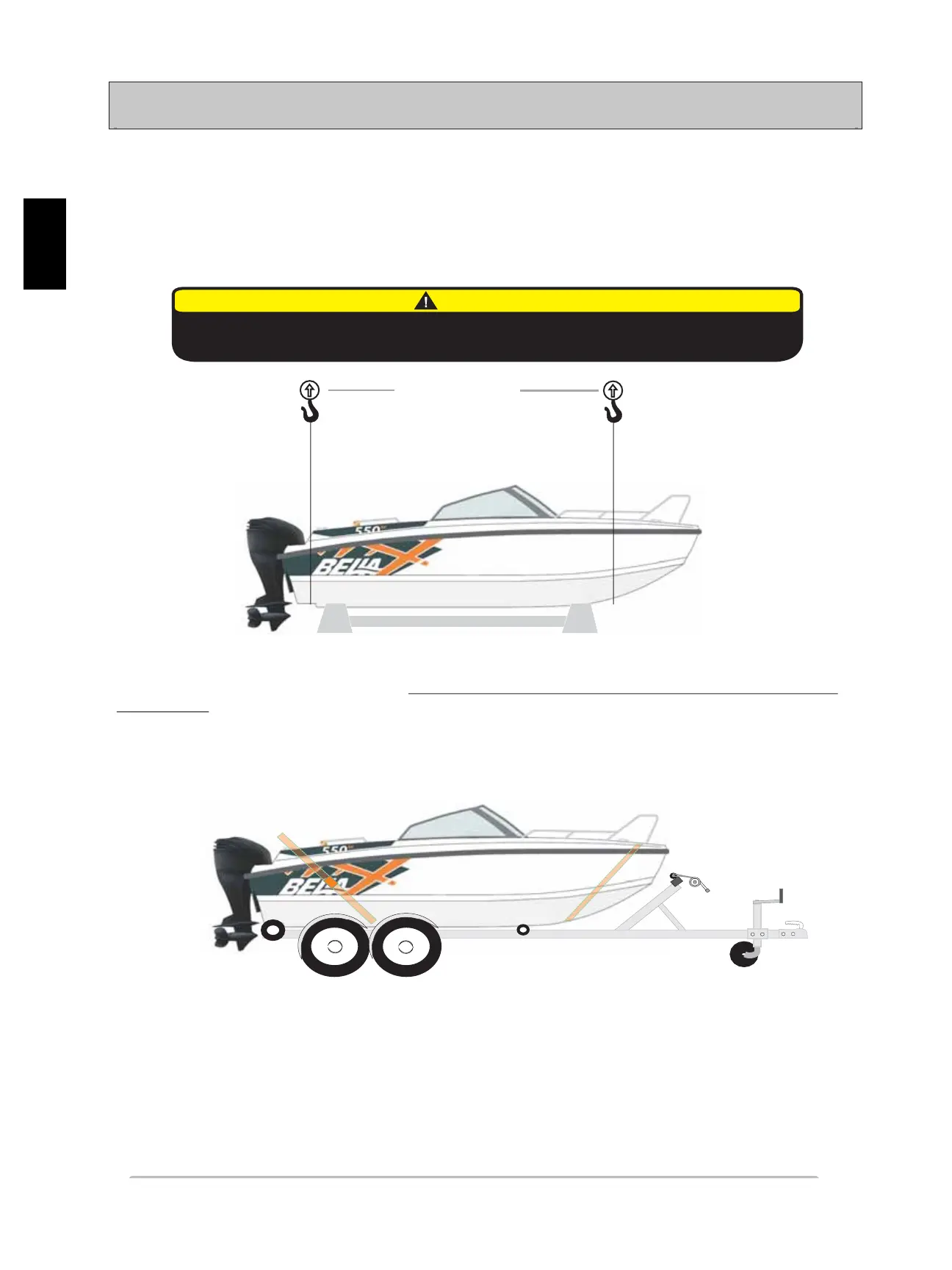 Suosittelemme käyttämään veneen nostossa asianmukaista kehikkoa. Ilman kehikkoa