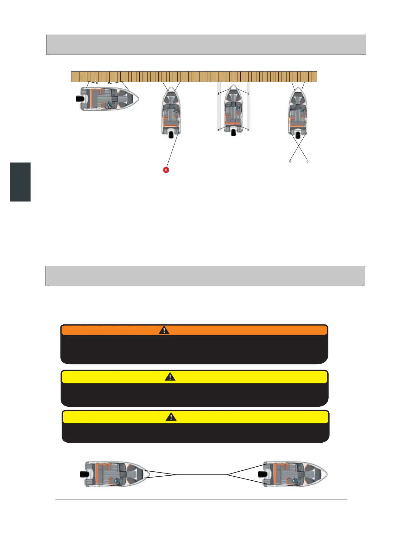 festes slik at den kan motstå sterk vind og høye bølger. Båten bør aldri festes midlertidig dersom