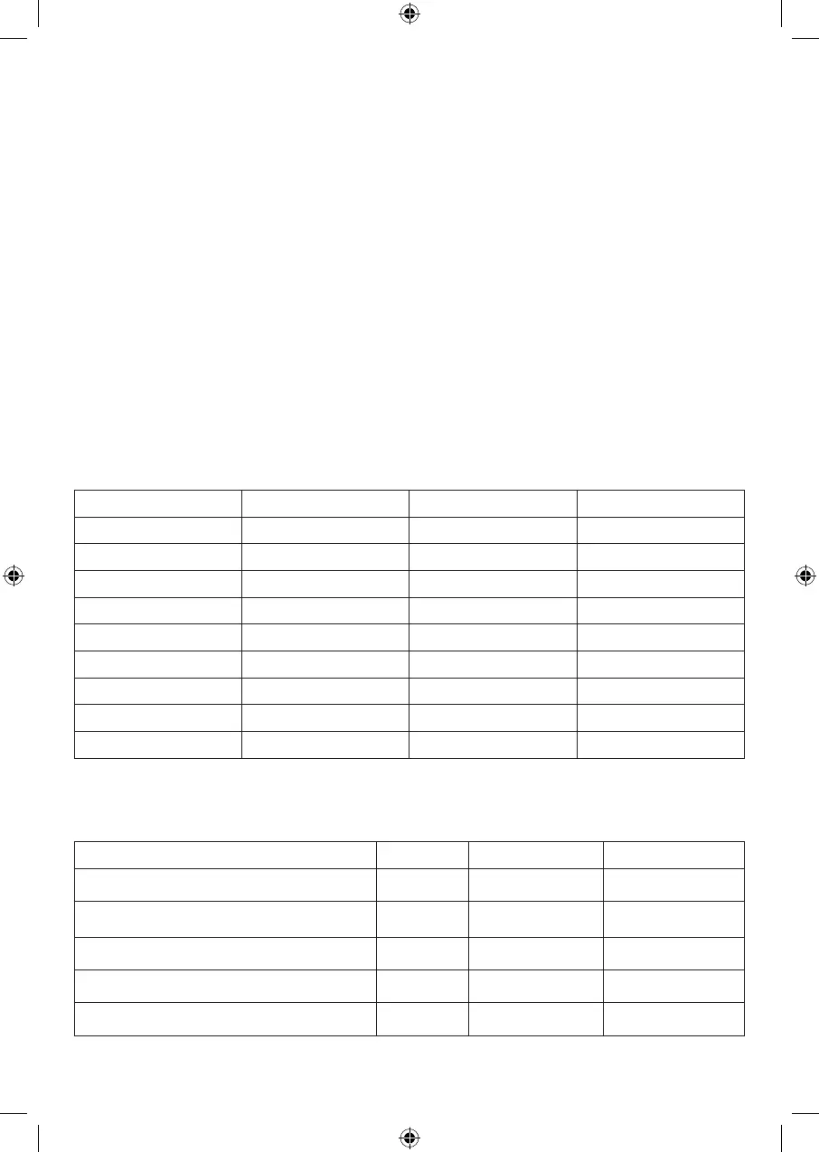 STEAM, YOGURT, SLOW COOK, OATMEAL FUNCTION CHARTS